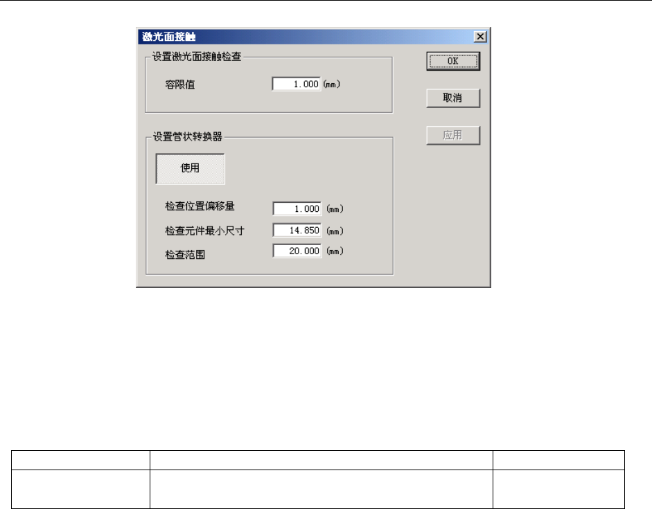 选择激光面接触检查后,显示图 8-5-18-1 的激光面接触检查设置对话框。