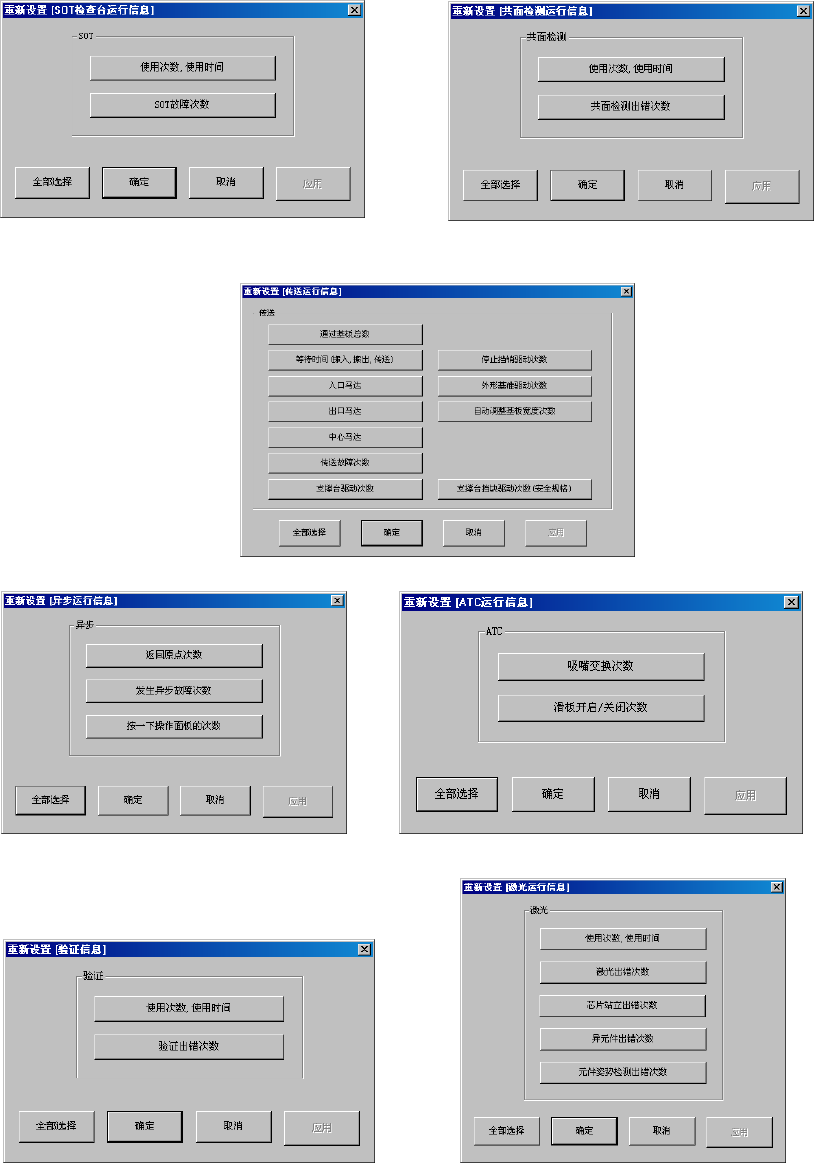 图 10-5-17-13 重新设置 SOT 检查台运行信息画面 图 10-5-17-14 重新设置共面检查运行信息画面