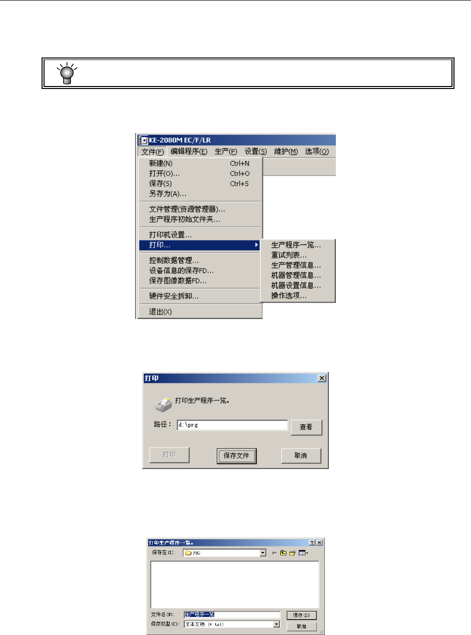 可打印“生产程序一览”,“重试列表”,“生产管理信息”,“机器管理信息”,“机器设置