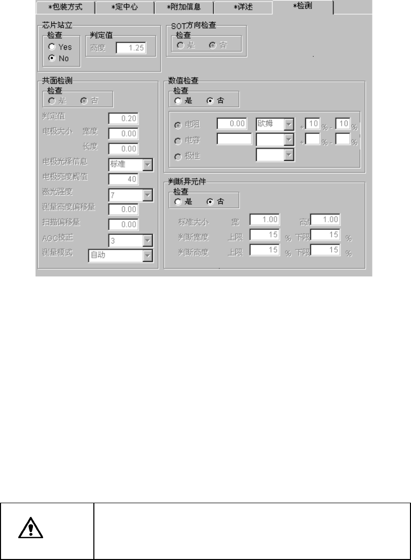 ※判定值: 自动输入根据已输入的元件高度尺寸计算出的值。激光定心时,当测定值超过此