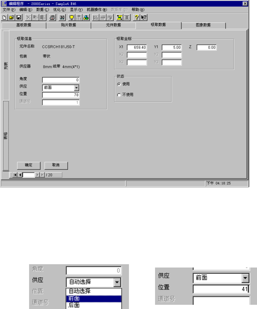 可指定供给各元件的位置和吸取位置。