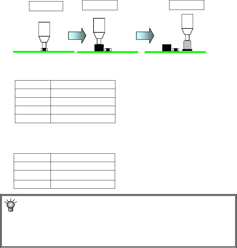 第4章 生产程序制作 Rev01 ③ 考虑元件种类、元件高度 相对于制作密集元件贴片(邻接贴片)的程序,设定已自动考虑元件高度的元件层。 通过选中该选项,按下列顺序进行贴片。 <考虑了元件种类、元件高度的贴片> 贴片顺序② 贴片顺序③ 贴片顺序① <贴片的优先顺序与元件种类、元件高度的关系> 优先顺序 元件高度(mm) 1 0 < t ≦ 5 .5 2 5.5 < t ≦ 12.0 3 12.0 &l…