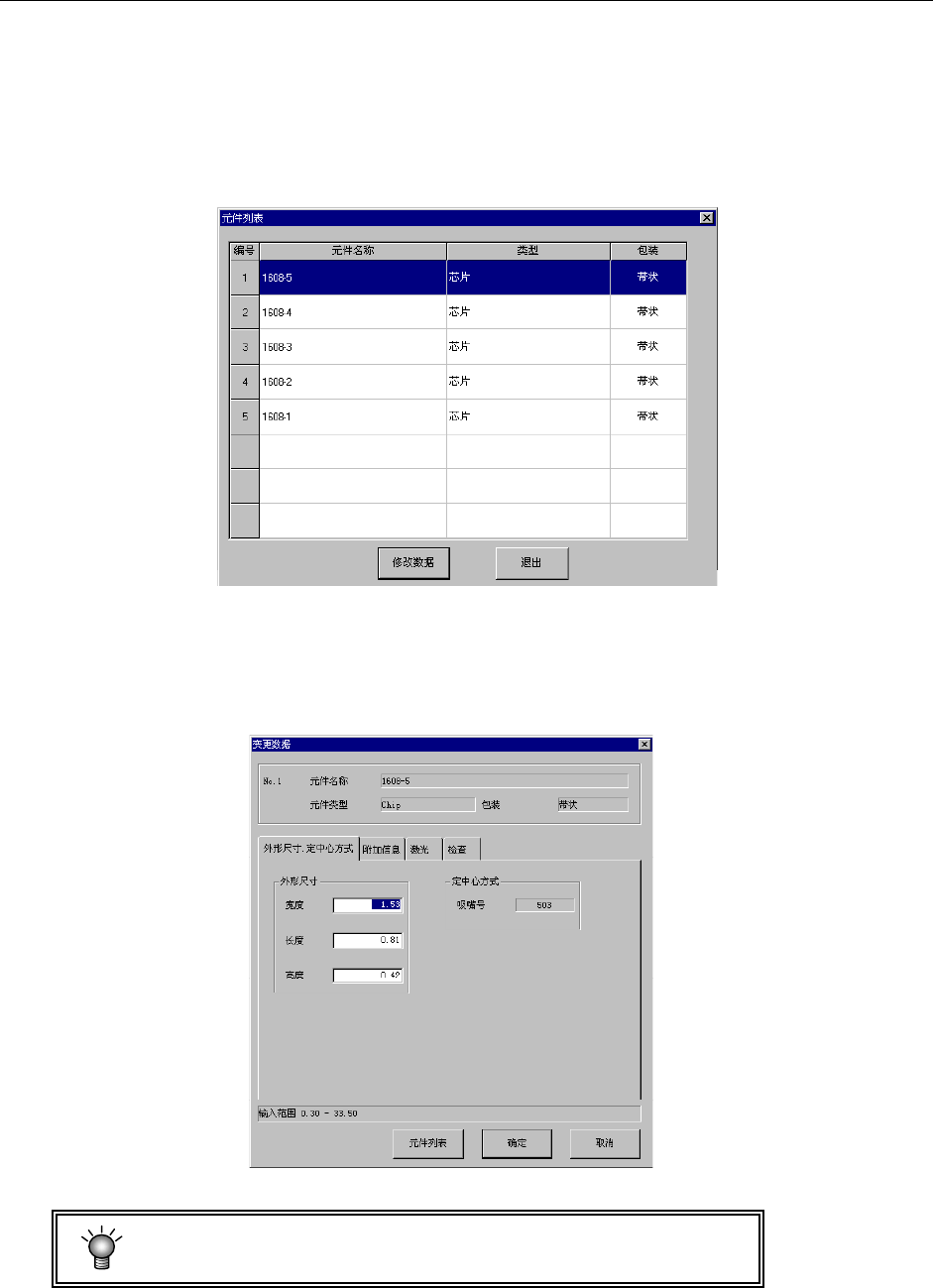 元件数据的内容中,送料器种类等部分信息不能变更。