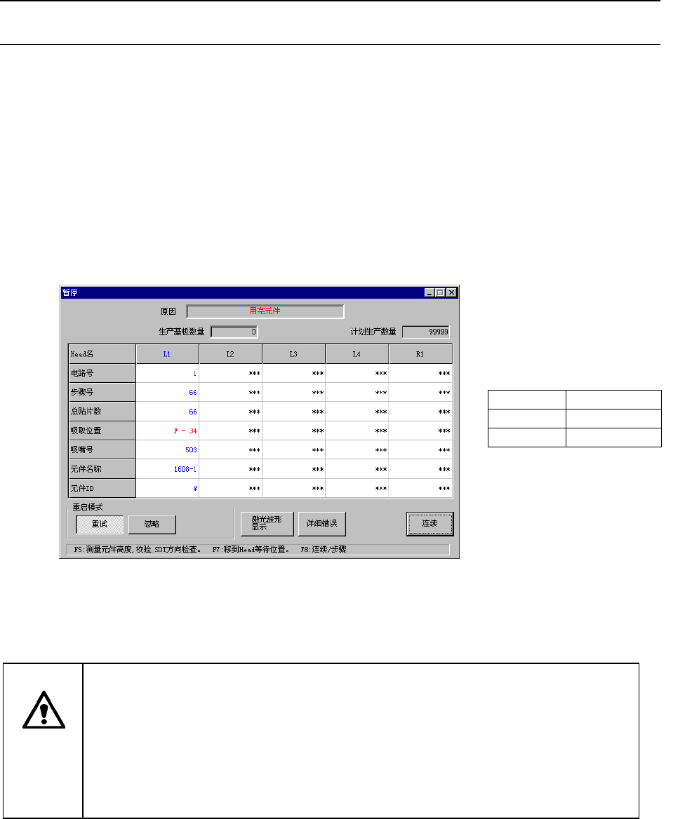 当从带式送料器、杆式送料器吸取元件时,如果发生重试超次,或当元件剩余数量为0时,则