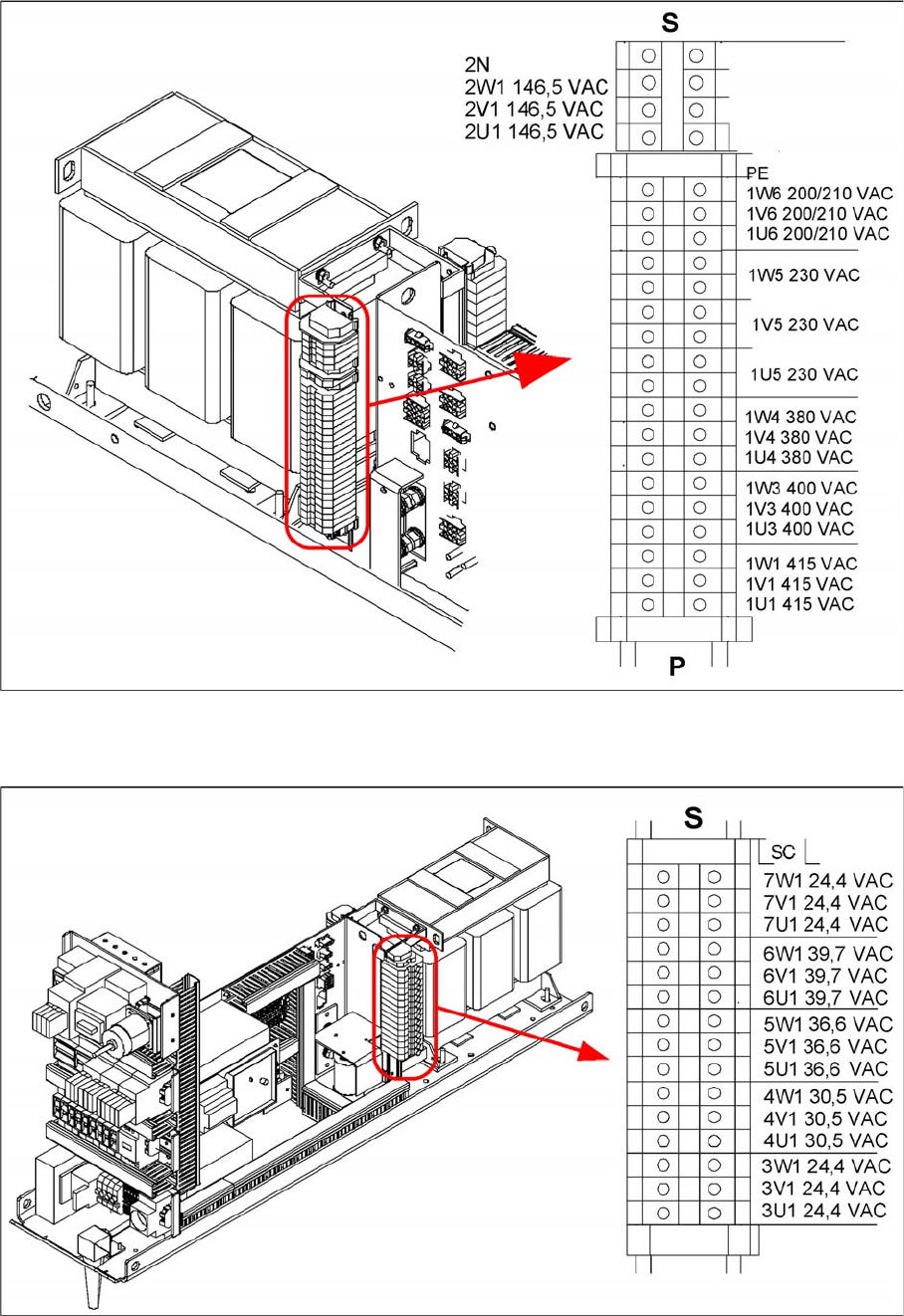 Service Work Electrical System 4.1.1 Power Supply Unit 52 Service Manual SIPLACE D1/D1i/D2/D2i ▪ 3 x 8.14 VAC ▪ 3 x 32.5 VAC ▪ 3 x 32.5 VAC ▪ 3 x 24.4 VAC Terminal panel of the power supply unit Terminal panel of the pow…