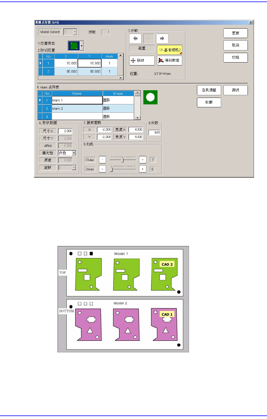 PCB上有基准点标记时,设定基准点标记的位置和标记的数据。