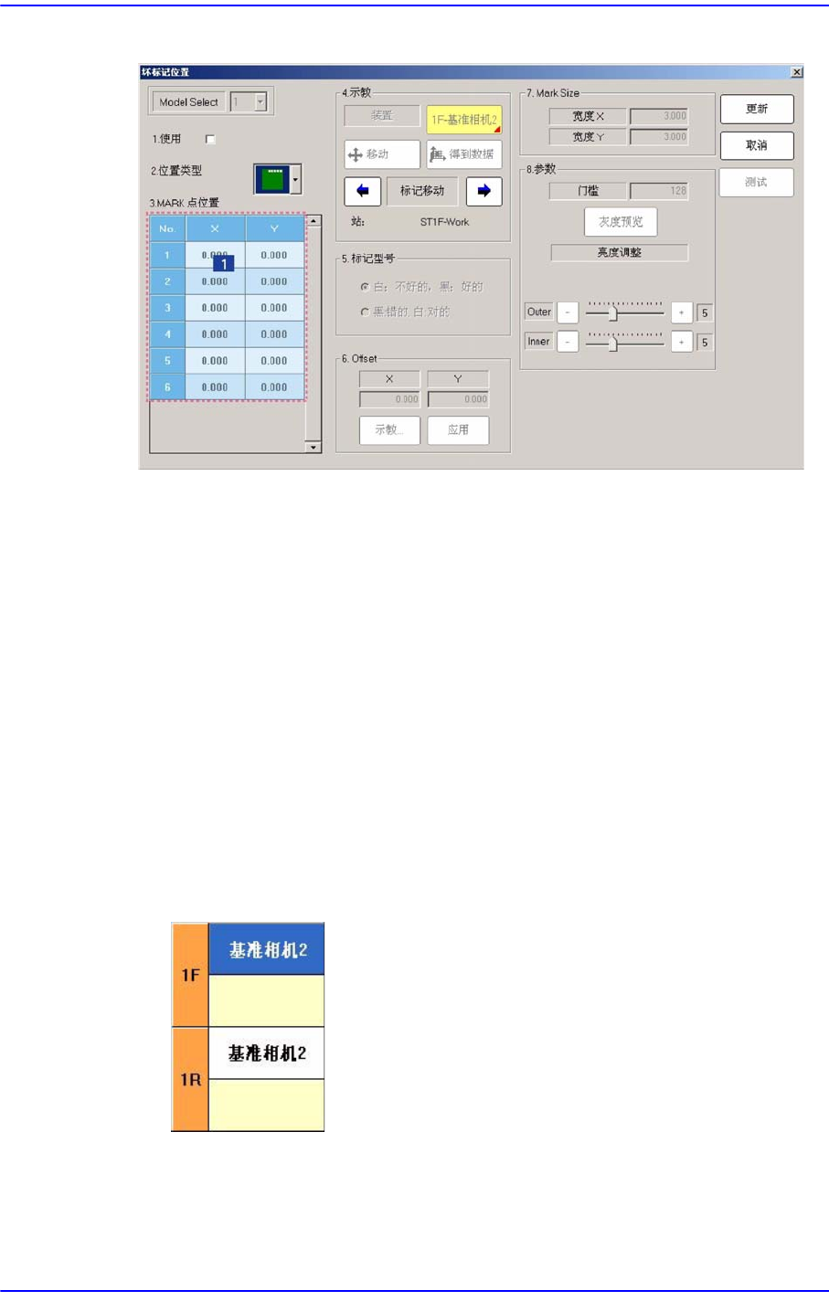 Mark偏移。 此按钮示教 Bad Mark的偏移量。按下此按钮时依次显