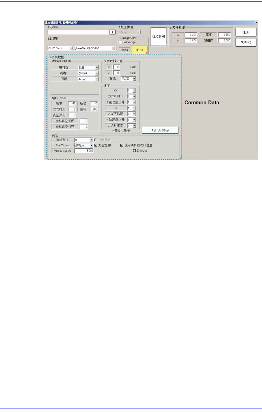 7-9 元件的登记 图 7.4 “ 建立新的元件 / 编辑所选元件 - 公共数据 ” 对话框 < 喂料器 & 吸嘴 > 领域 < 喂料器 > 组合框 选择将供应部品的喂料器形式。 可选 择的喂料器 形式如下。 SM8L: 用 8mm SM 带式喂料器 ( 大型 ) 供 应部品。 SM8: 用 8mm SM 带式喂料器供应部品。 SM12: 用 12mm SM 带式喂料器供应部 品。 SM16: 用…