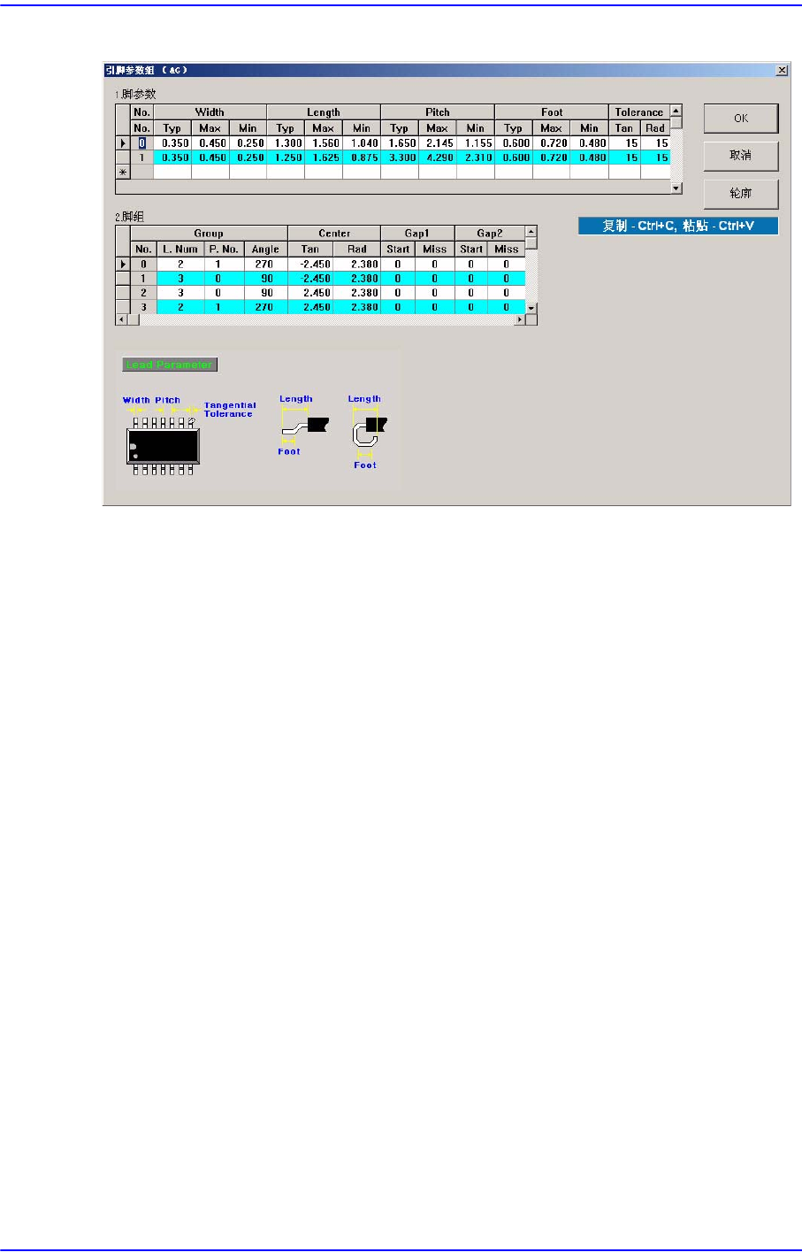 可以设定引脚参数与引脚群组。详细内容请参阅“7.1.4.1 Lead Parameter”与