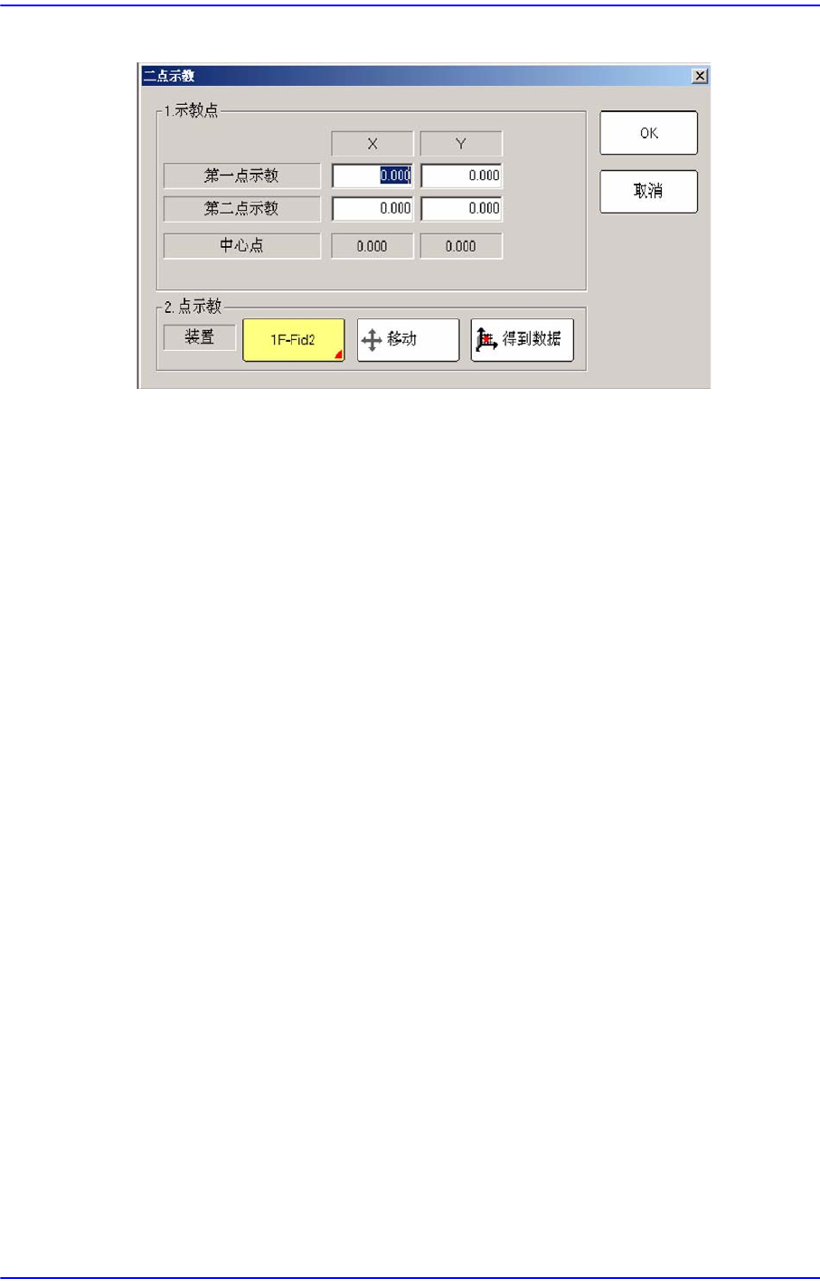 在<装置 >Selection control中选择的Fiducial camera移动到要执行‘两点