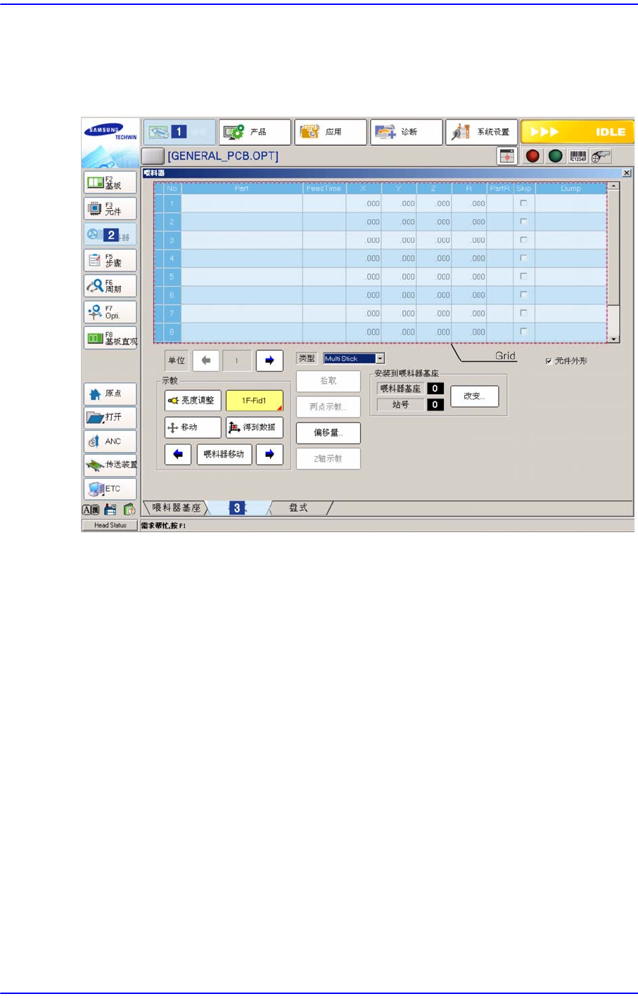 在“喂料器登录”对话框的<Grid>领域只显示安装的喂料器。
