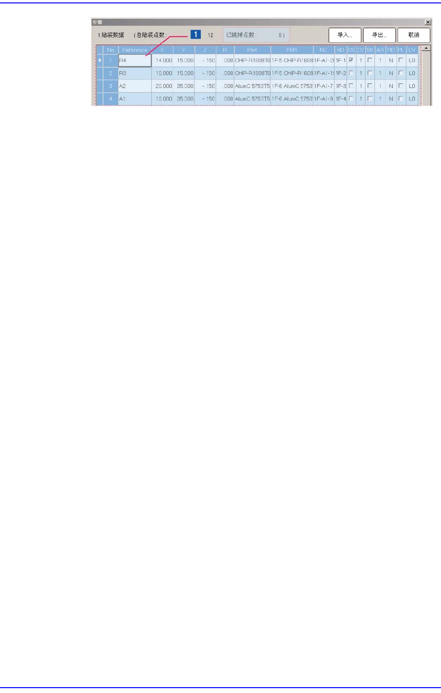 设定贴装点的参考名称。一般输入 PCB上的 R1, R2, C1, C2的值数。(最多8