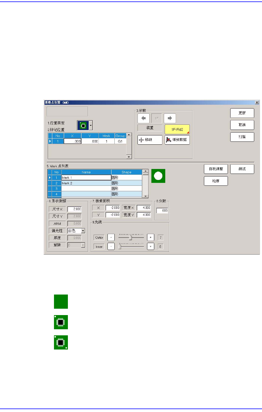 贴装点上有基准点标记时,设定基准点标记的数据。单击此按钮时显示如下的
