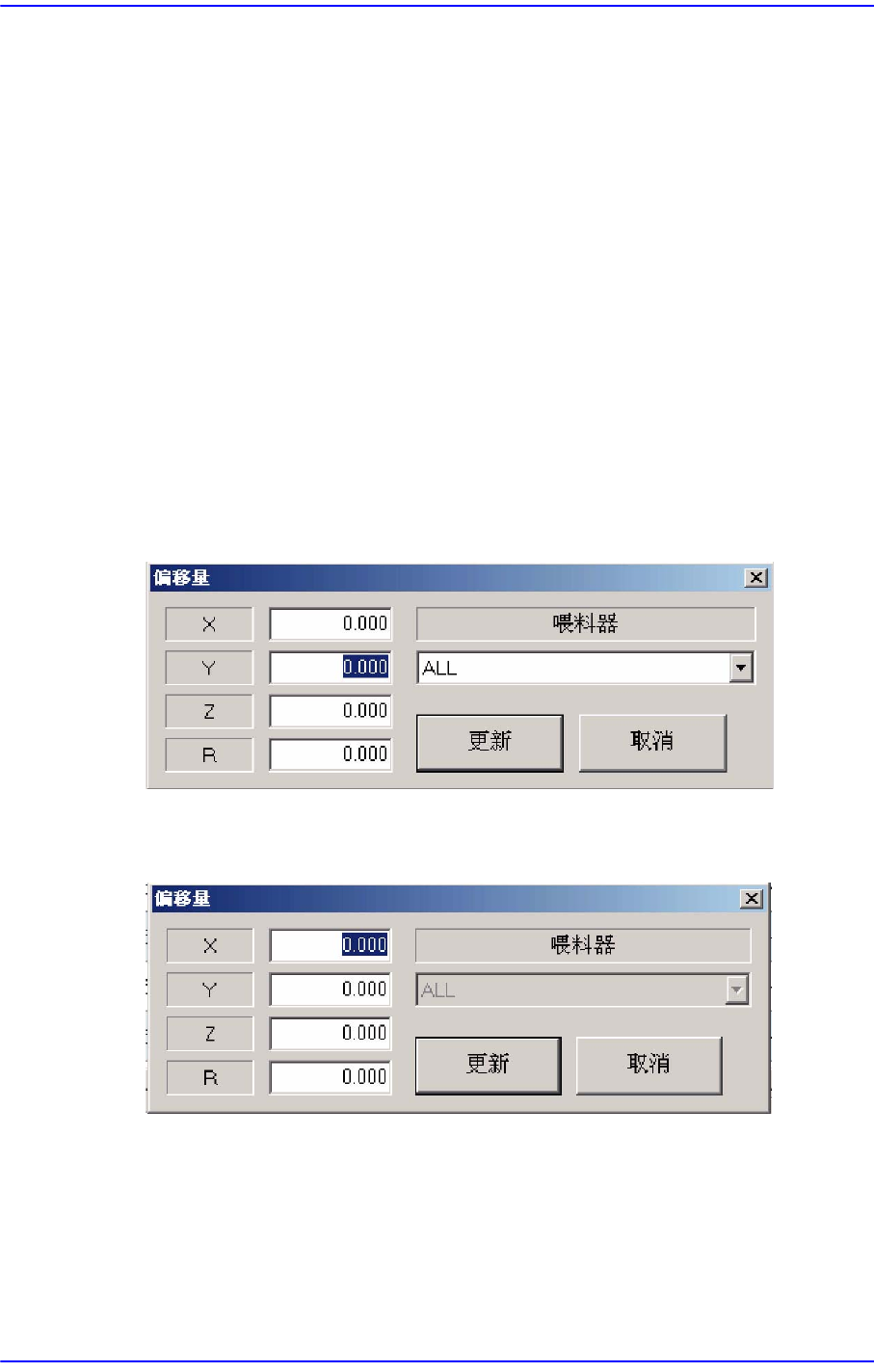 它执行给贴装点的位置追加偏移量数的功能。 在执行此功能前,X列,Y列,Z