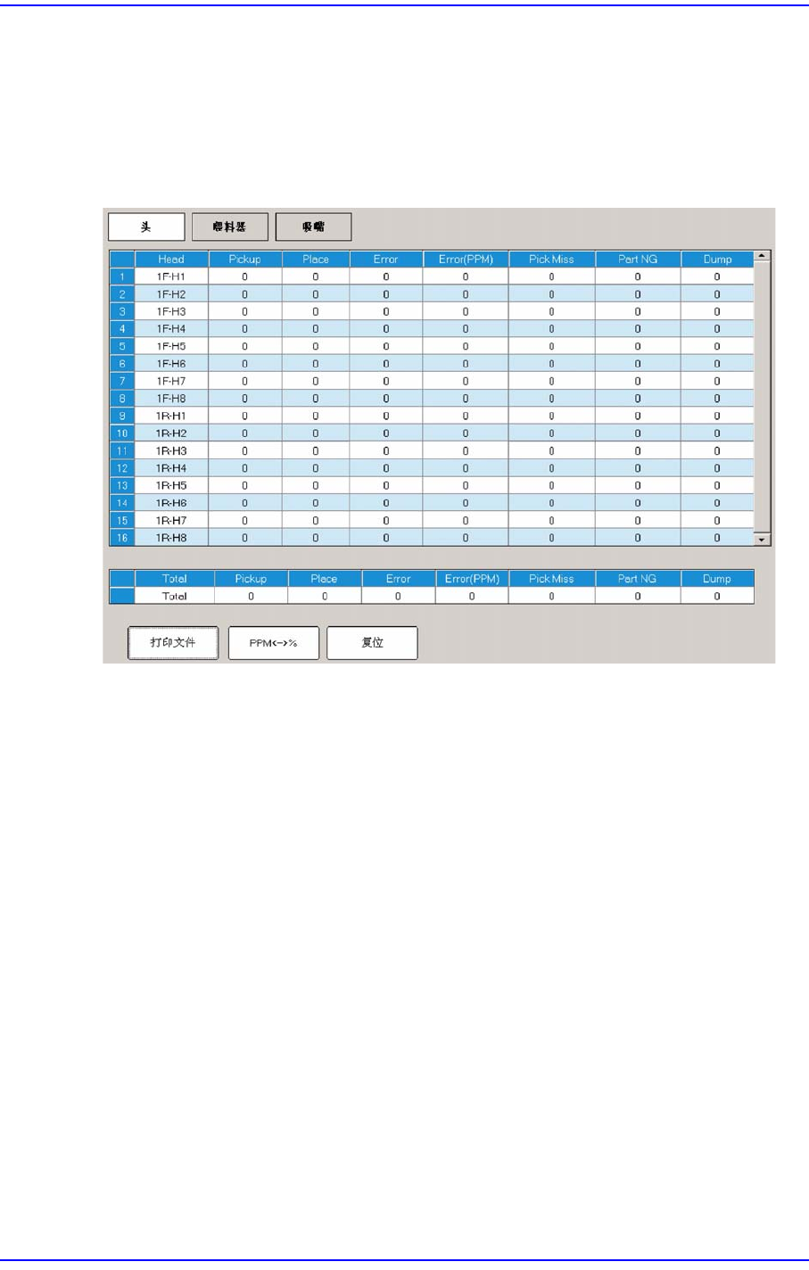 表示各磁头的作业信息,显示跟贴装有关的全部统计信息。