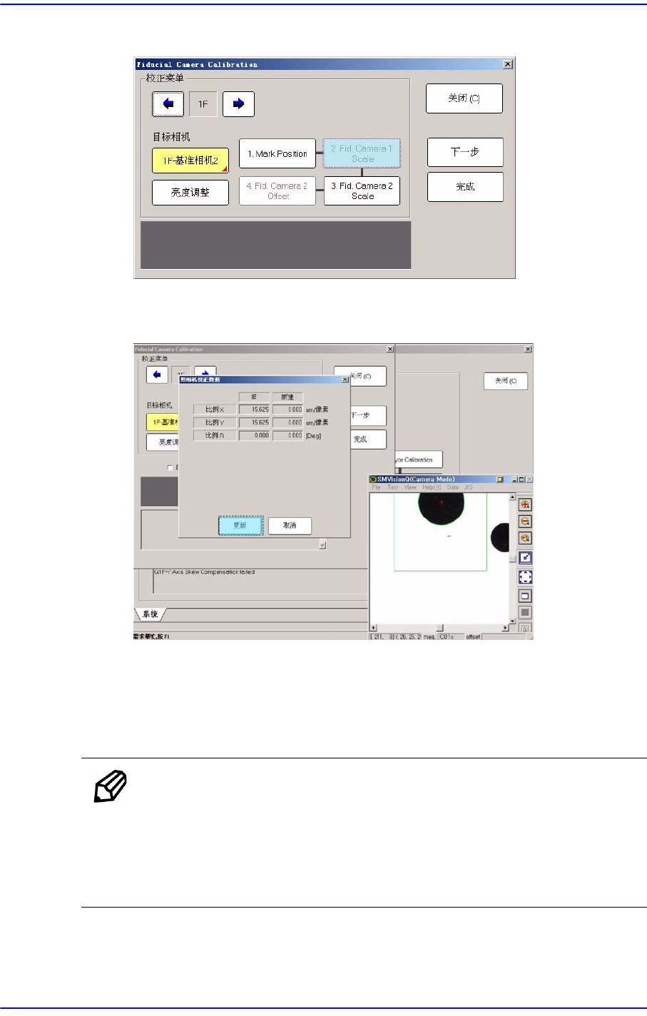 校正Fiducial Camera。为校正基准相机的Scale(um/pixel)和Rotation(deg)没有