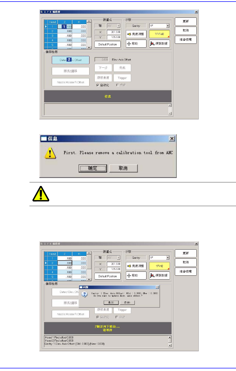号与贴片头2号主轴依次下降并测量 Z轴高度,然后询问是否反映其结果。单击