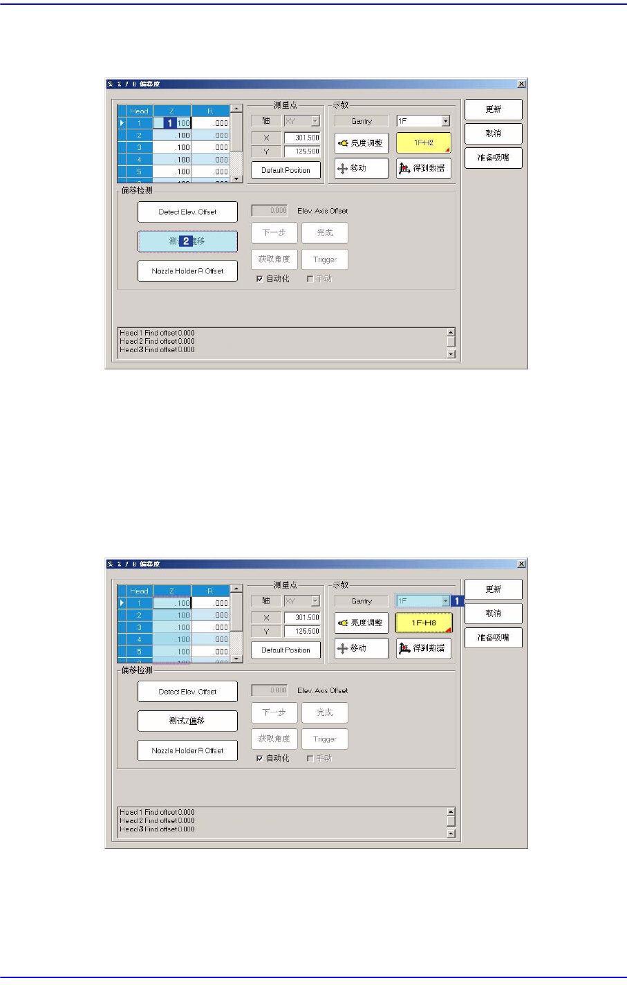 击<测试 Z偏移 >键。(在此随意设定为贴片头1)