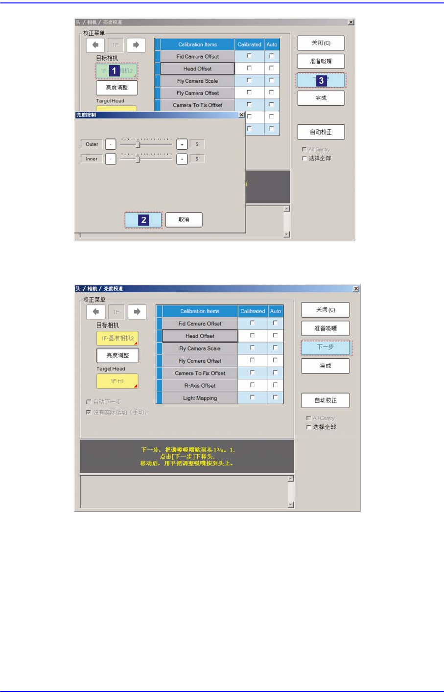 2. 圈选<自动下一步>复选框后再单击<Head Offset>键,将自动校正选定 Gantry并