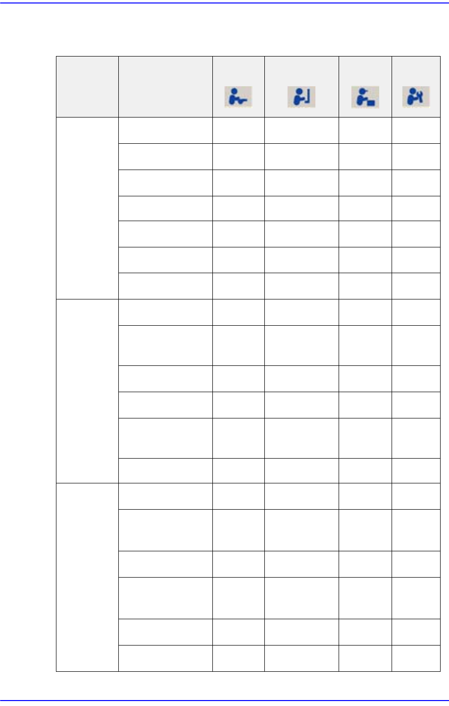 1-4 Samsung Componen t Placer SM431 Administrator’s Guide 以下是列出不同用户接近 MMI 菜单权限的表格。 ○ : 允许 , △ : 部分限制 , × : 限制接近 表 1.1 User Access Limit Menu bar Sub T oolbar 操作员 程序员 管理人 维护 PCB 编辑 基板 (Board) △○ ○ ○ 元件 (Part) × ○○ ○ 喂料器 (…