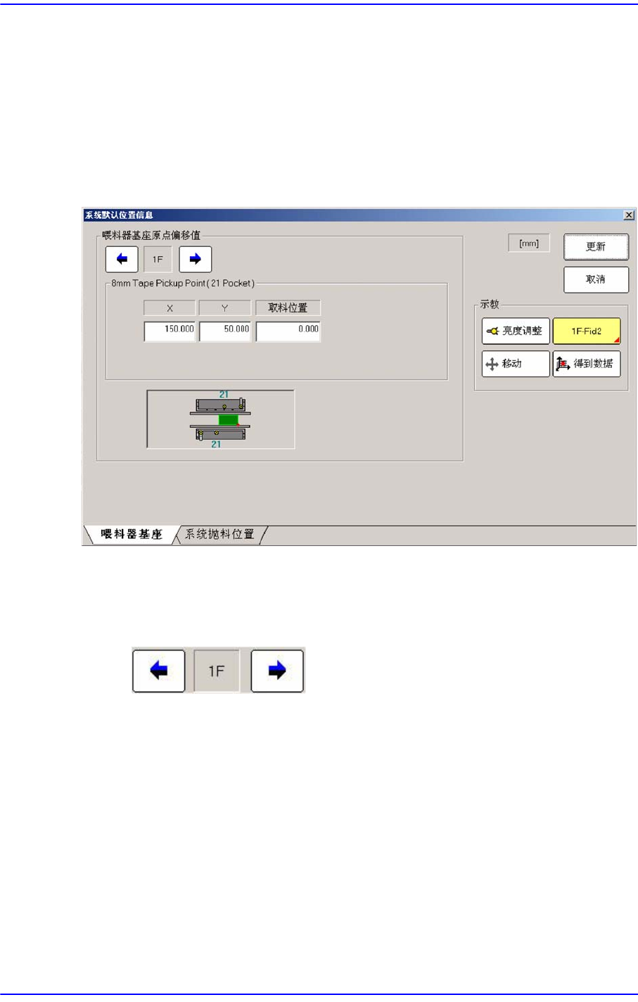 单击箭头键后选择需要设定喂料器底座原点偏置值的喂料器底座。