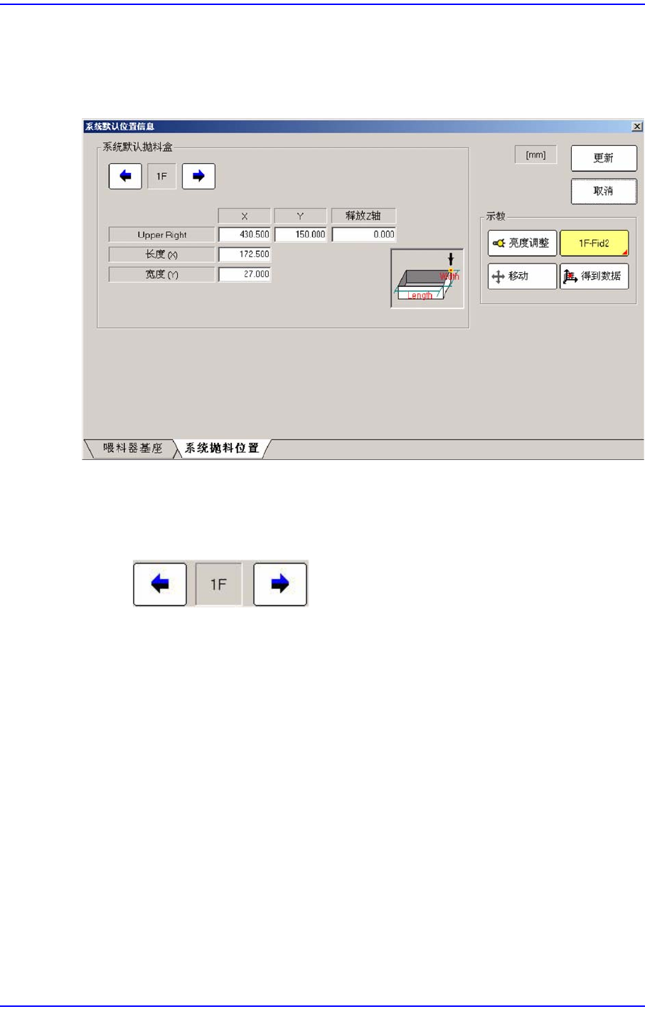 1F:显示出当前选定的喂料器底座。(1F:正 面 、1R:背面)