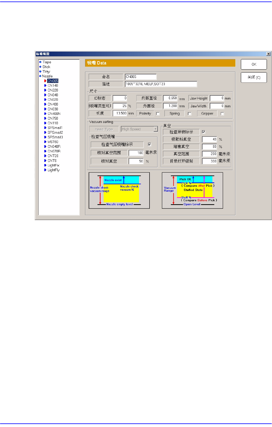 以下画面是List Box中选择 “吸嘴“时。 设定有关吸嘴的数据。