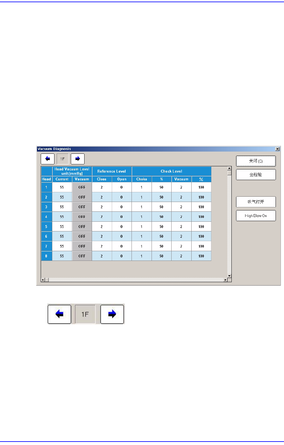 清扫贴片头的主轴管路或倾倒微细元件时使用。单击该键时,将启动供应高压
