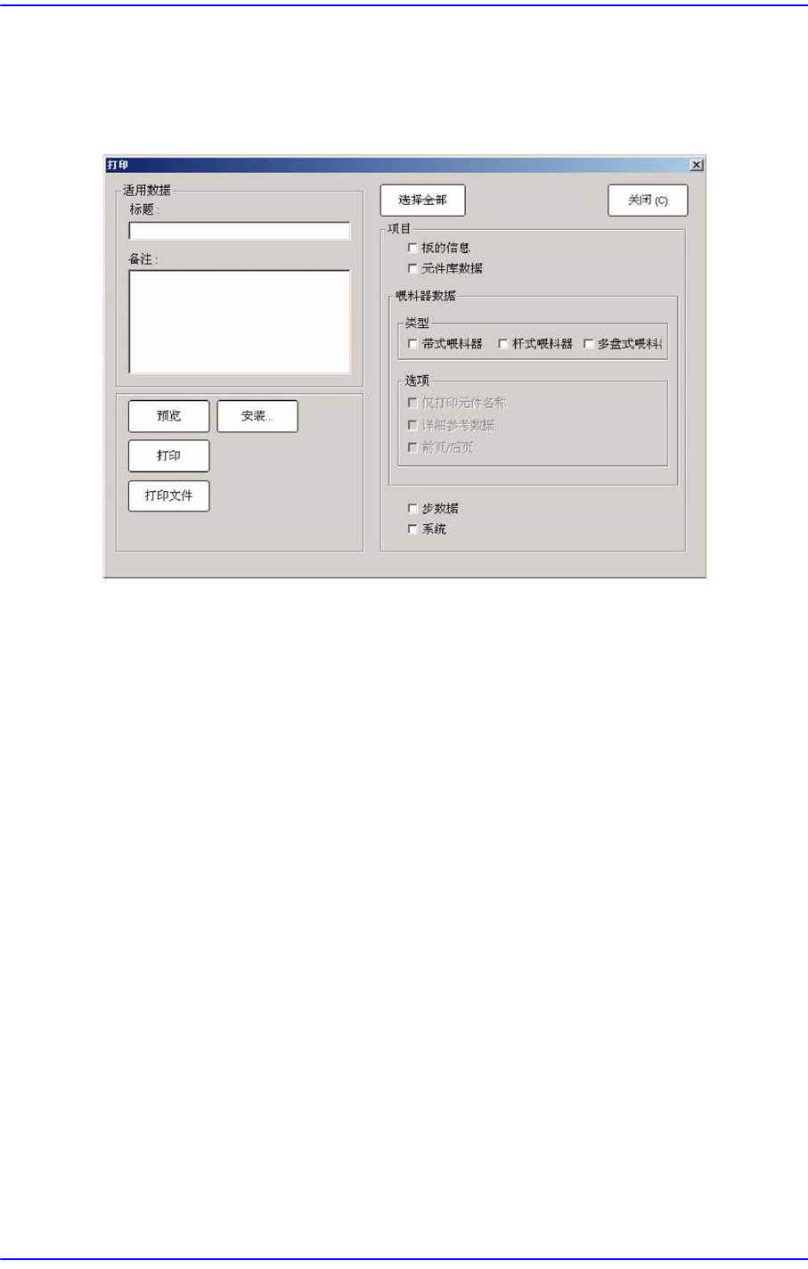 15-3 应用 多盘式喂料器 : 选择 Tray Feeder 信息。 < 选项 > 检查框领域 仅打印元件名称 : 喂料器信息 变更为单纯的输出格式。 详细参考数据 : 输出所有参考 信息。 前页 / 后页 :以 Unit ( 1F/1R/2F/2R ) 为单位分页输出喂料 器信息。 < 步数据 > 检查框 选择有关作业顺序的信息。 < 系统 > 检查框 选择有关设备的系…