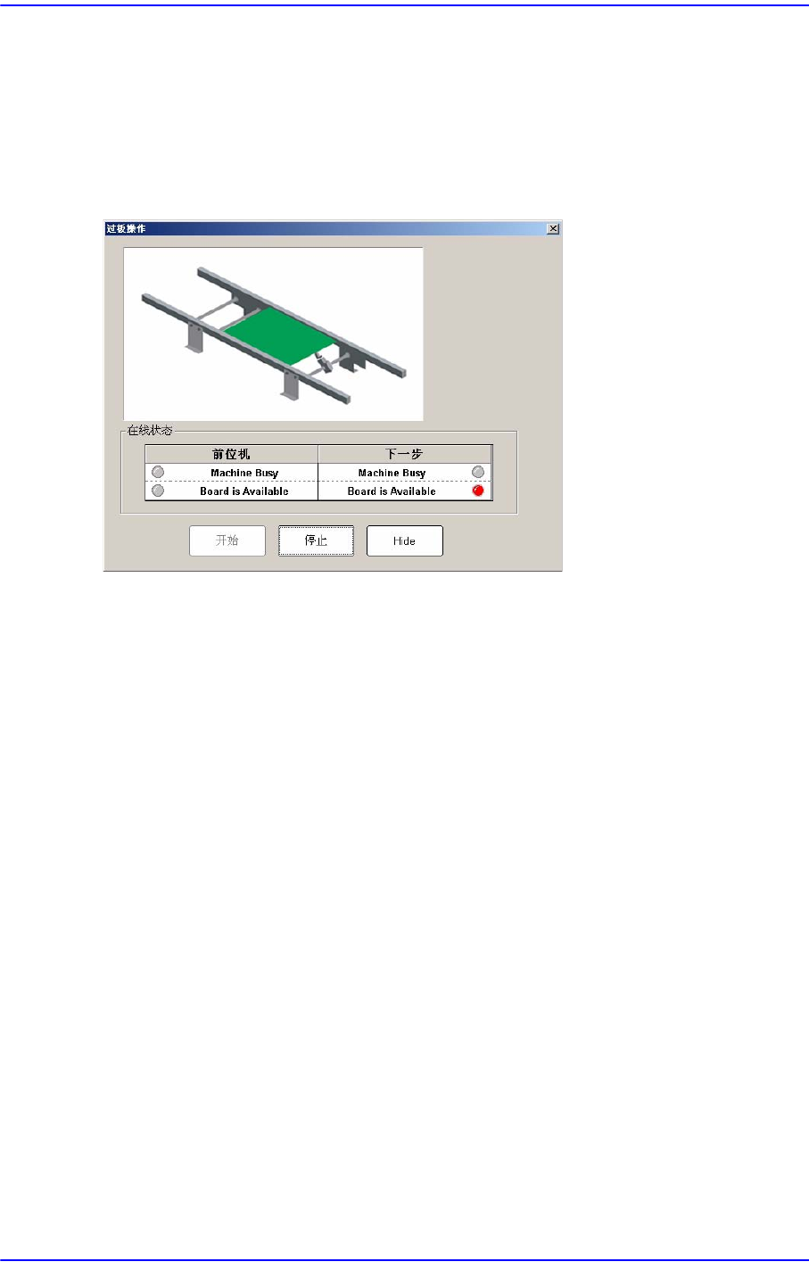 15-8 Samsung Componen t Placer SM431 Administrator’s Guide 15.5. 直通 (Bypass) [F6] 选择 ‘ 直通 ’ 子菜单时显示如下的对话框, 表示 处于 PCB 直通状态。 如果 Head 在传送装置的上部, 可能会 影响到 PCB 的感应传感器, 所以先把头移到远 离传送装置的位置后执行此命令。 图 15.7 “ 过板操作 ” 对话框 < 在线状态 >…
