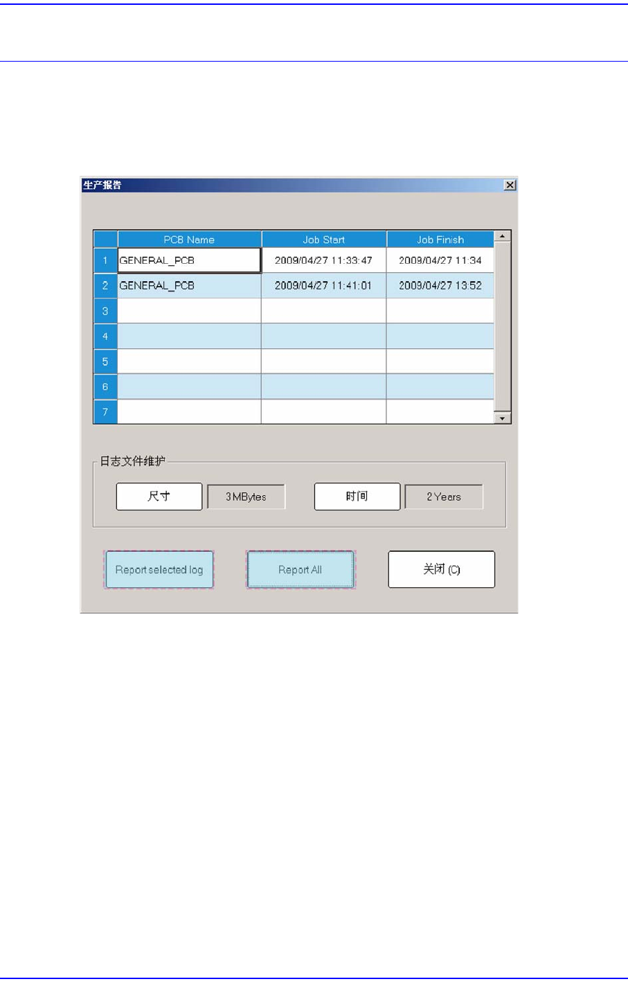 16-1 生产信息管理 第 16 章 . 生产信息管理 16.1. 生产信息管理 [Pd. Info] 在 ‘ 应用 ’ 菜单的 ‘ 生产数据 ’ 子菜单的对话框单 击 〈 Report selected log 〉按 钮 或 〈 Report All 〉 按 钮则显示如下对话框。