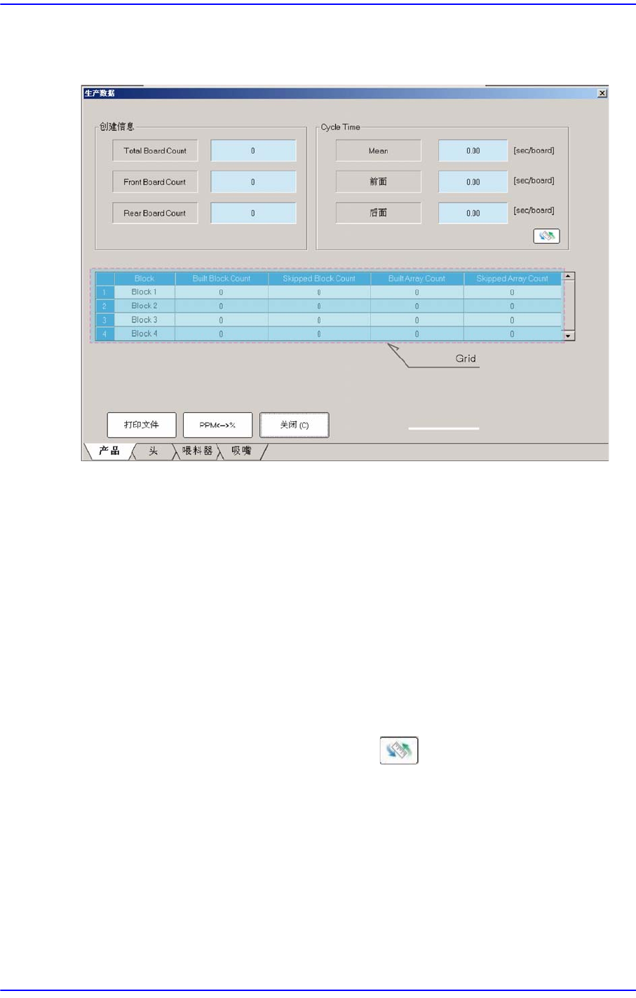 显示与贴装时间有关的信息。点击右侧的 按钮则显示各个不同形态的信