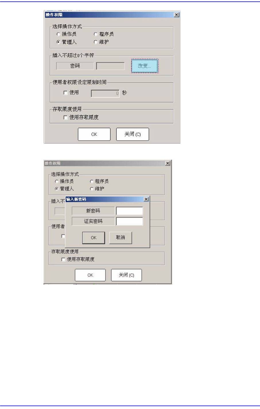 注 意 请勿与其他用户共享程序员方式及管理员方式的密码。 由于程