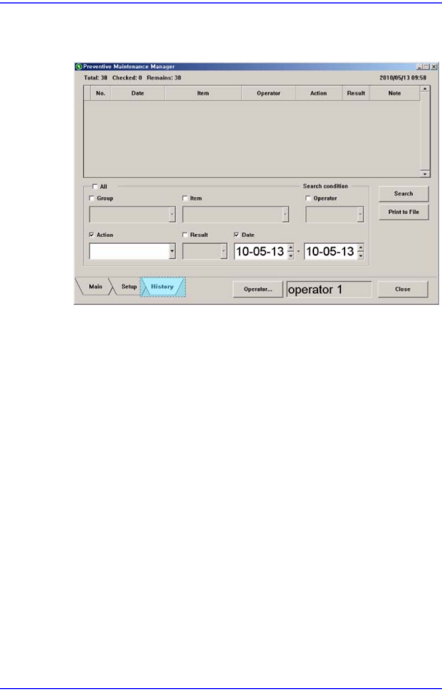 PM Manager由Main画面, Setup画面, History画面构成。最初执行PM Manager时基