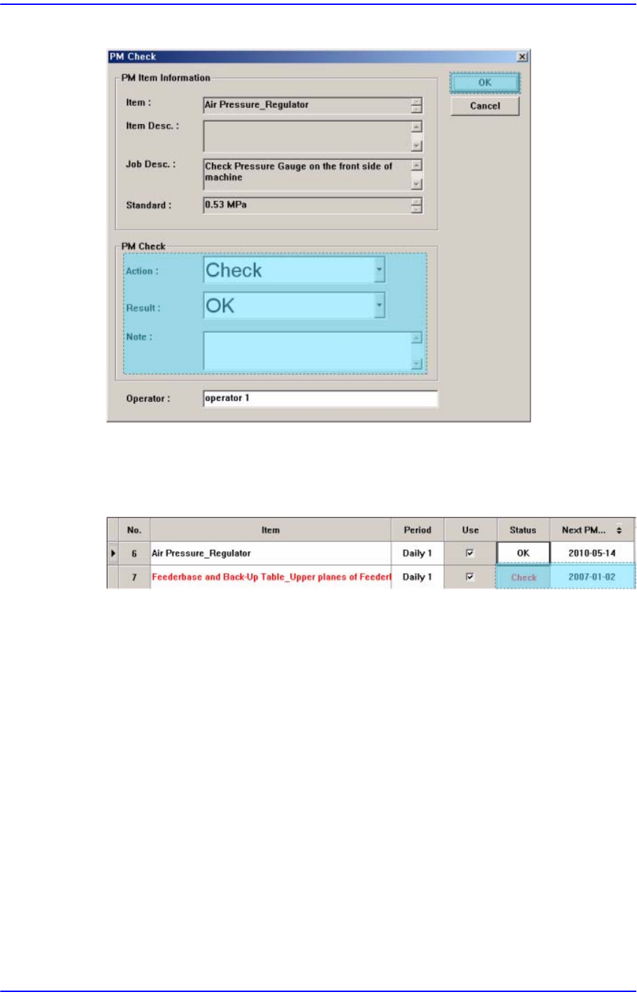 ”Check”变为”OK”同时在<Next PM>列中更新为PM Check的日期.