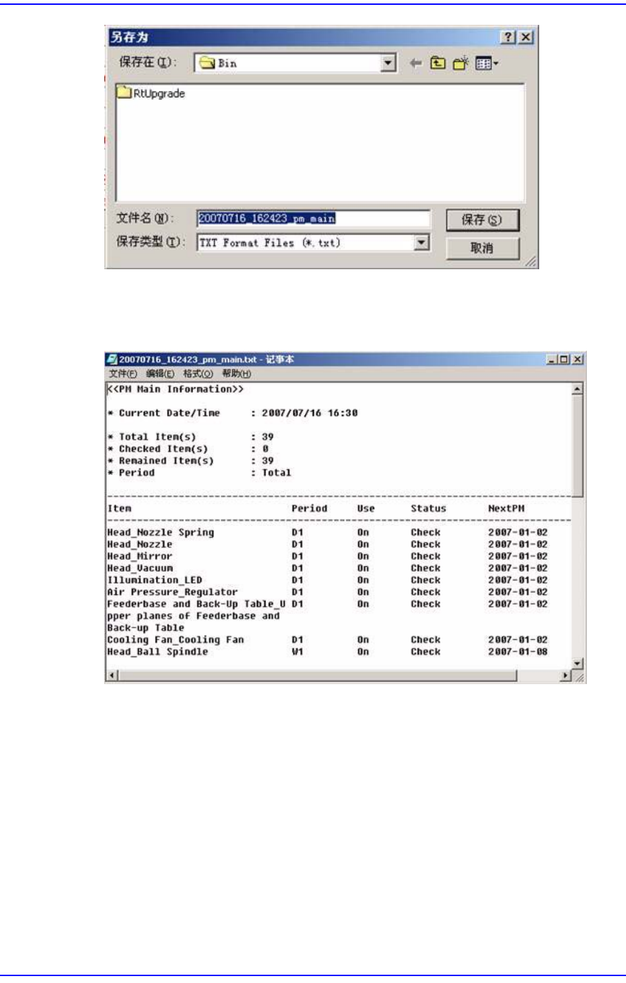 17-8 Samsung Componen t Placer SM431 Administrator’s Guide 图 17.7 PM Manager 的 Main 画面 History 画面中记录所有变更项 目的历史, 同时在 Note 中显示 ”Reset all items”. 17.4.7. 以文件形式输出检查项目 所有的检查项目可以用 Te x t 文件的形式输出。 方法如下 . 点击 <Print to File…