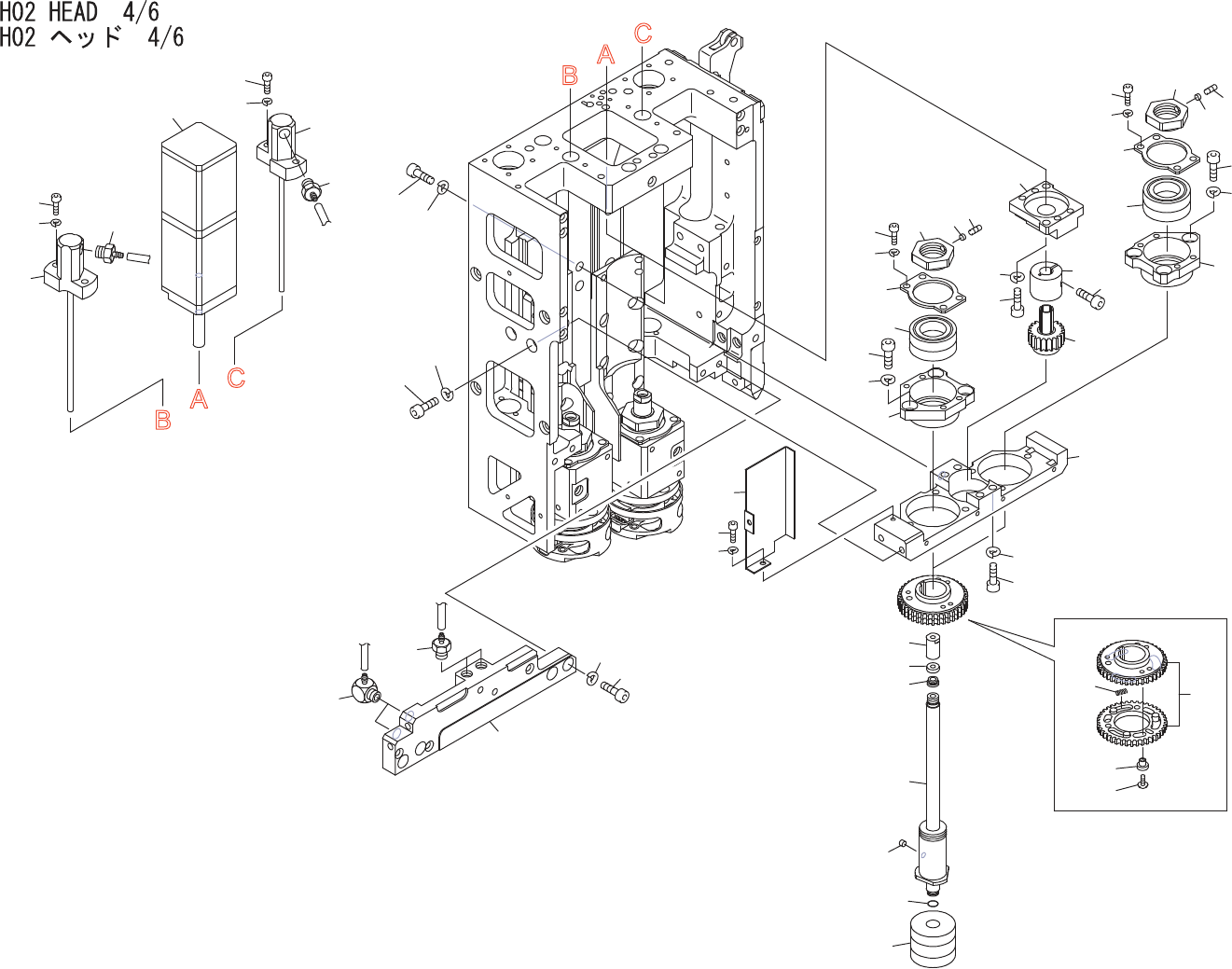 H02HEAD4/6 H02ヘ ッド 4/6 QK87403 No. Drg.No.&CodeNo. QTY Description Rating Materials Remarks 番号 図番 &コ ード番号 個 数 品名 規格 材質 備考 1 PM03LE4 1 BKT,HOLDER BKT ホルダ AL 2 H5288A 1 BOLT,HEXSOCKET ボ ルト 六角 穴 M04…
