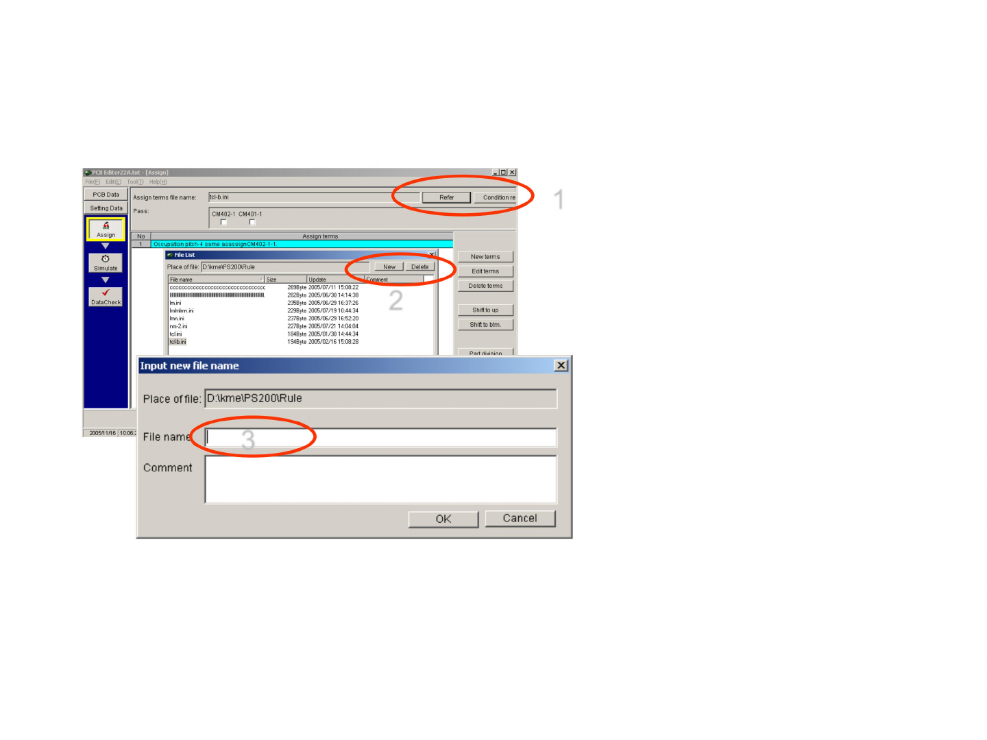 五、优化技巧 新建优化条件 1. 选择 refer 2. 选择 new , 创建新的条件 3. 输入新的条件名称 1 2 3 File(F) Edit(E) Tool(D Help(H) Refer Condition re Pass: CM402-1 CM401-1 r r Assign terms Occupation pitch-4 same asassignCM402-1-1. New Delete Size Update Fi…