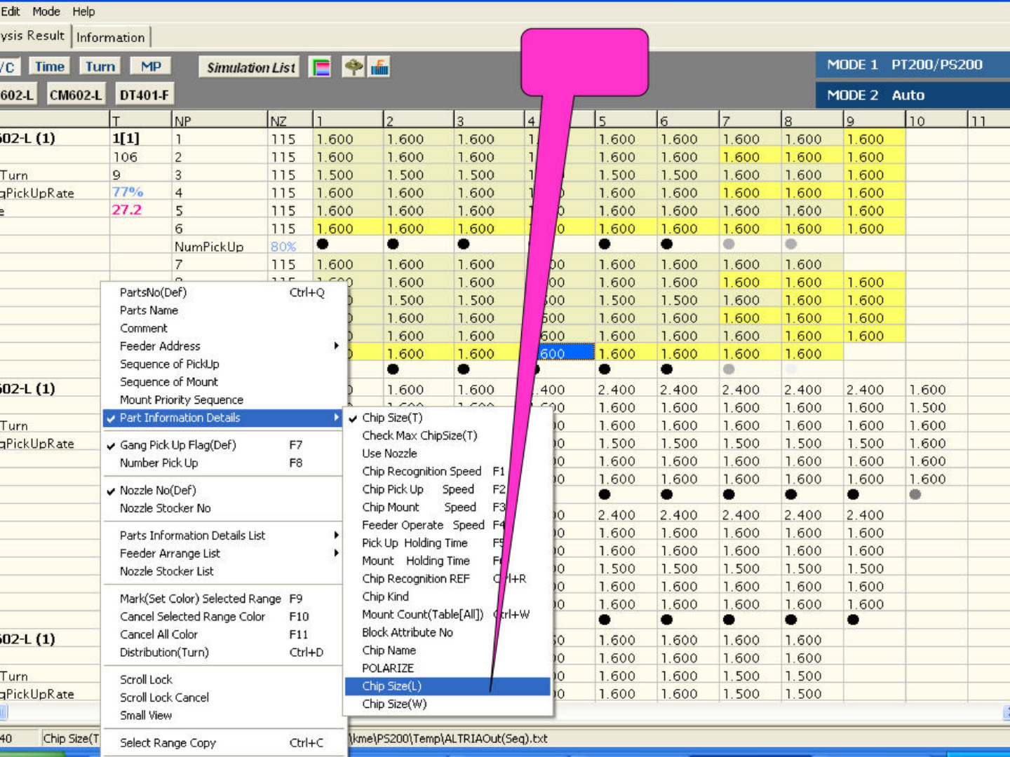 元件的宽 Edit Mode Help vsis Result | Information | /c| | Tim— 1 1 Turn | $订打" 玷疗 £#sl | MODE 1 PT200/PS200 l 刀 602-L | CM602-L | [ 口 T401 上 ] MODE 2 Auto T NP NZ 1 2 3 4 5 1 s 7 8 9 10 11 ,02-L 1[1] 11 115 0.800 0.800 …