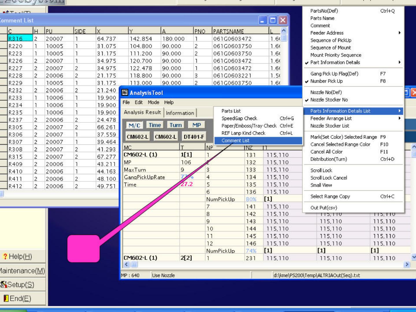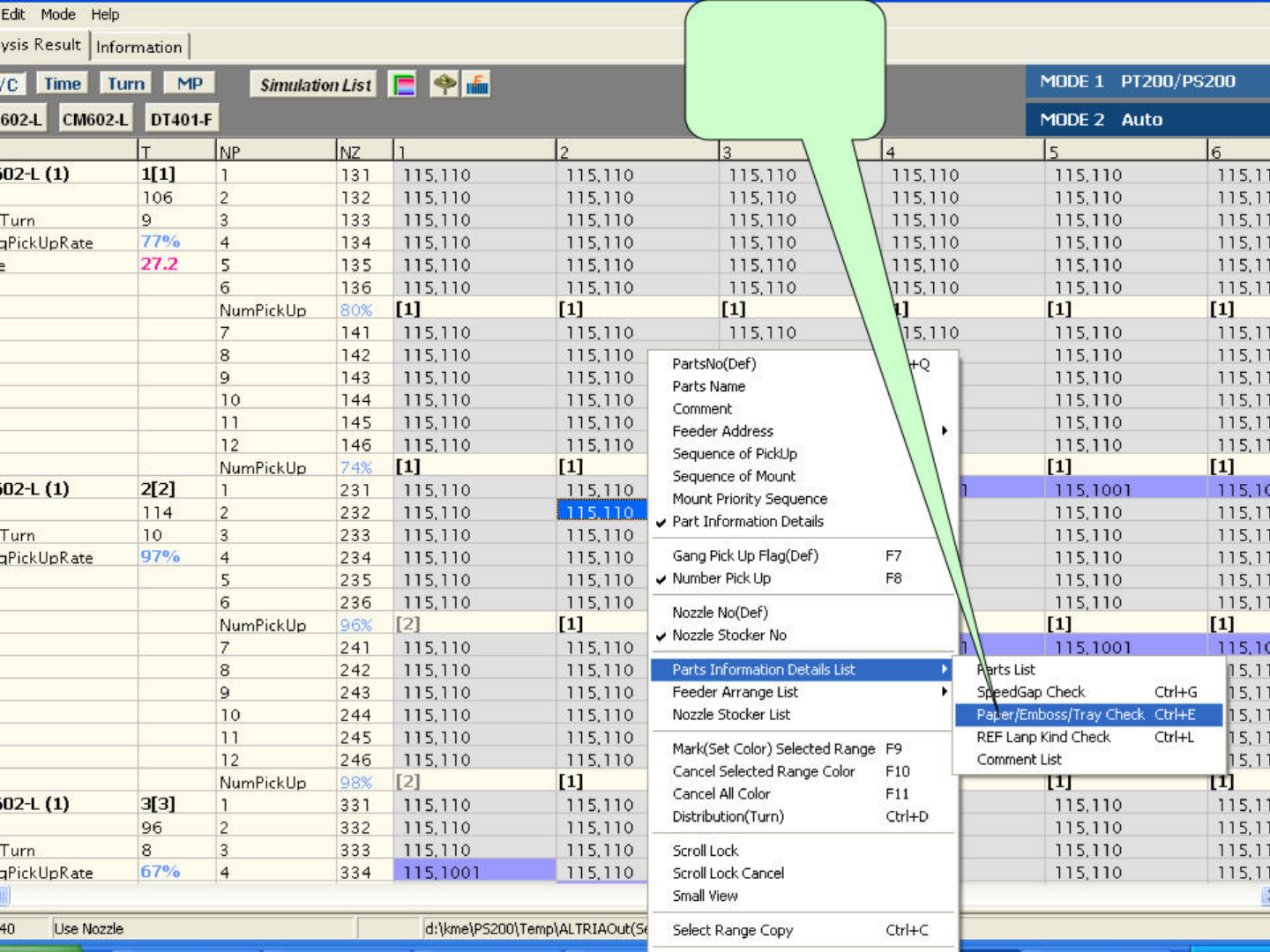 相同包装方 式会显示同 一种颜色 Edit Mode Help vsis Result | Information | . Turn | MP Siimiatioi) Lisi | Ml MODE 1 PT200/PS200 602・L | | CM602-L | DT 401H k J MODE 2 Auto T NP NZ i 2 2 \ \__ 4 5 6 (1) 1LU 1 131 115.110 1 1 5.1 10 115.…