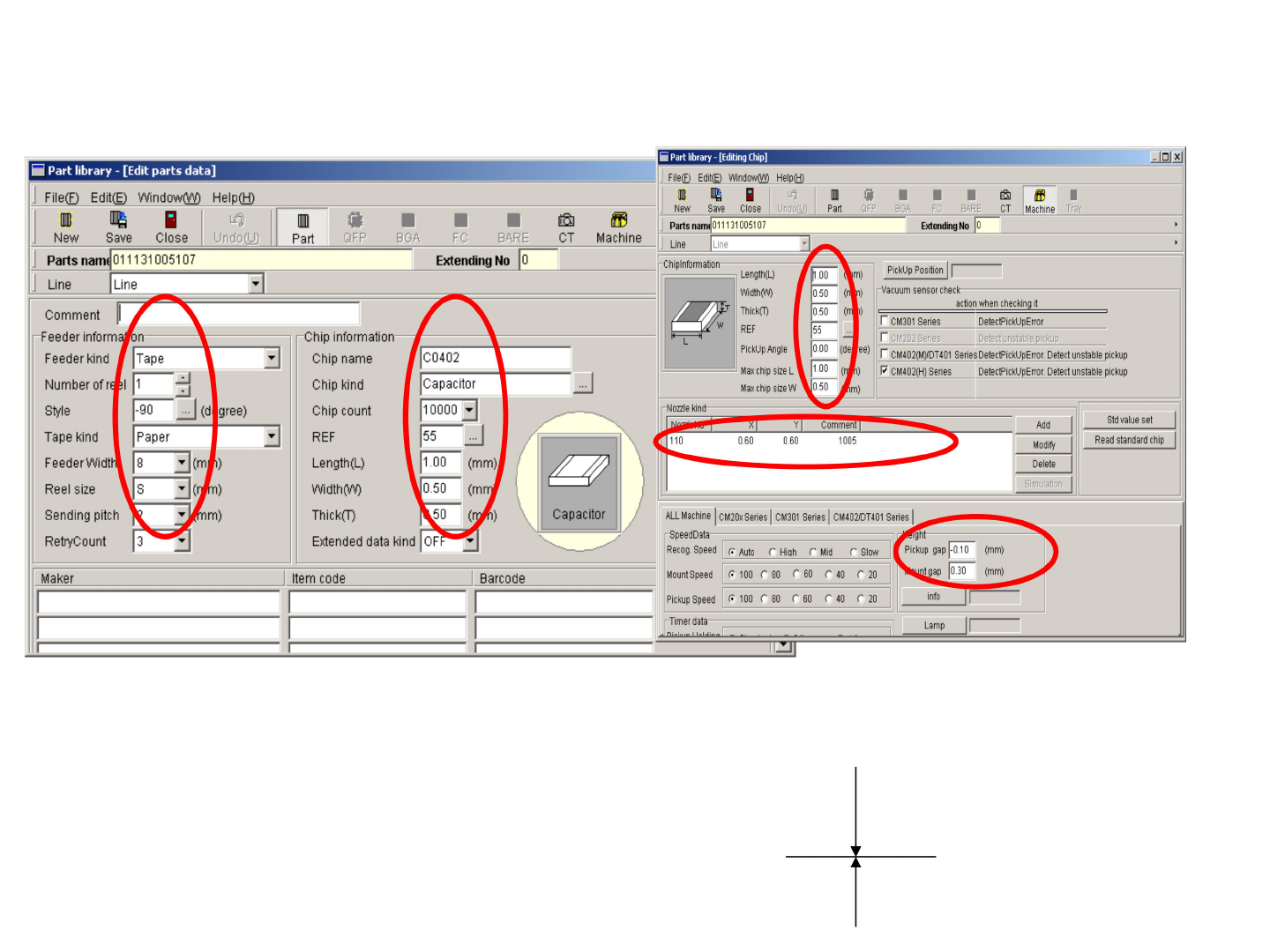 4.正确输入元件pick up gap 与 mount gap 信息 平面 -