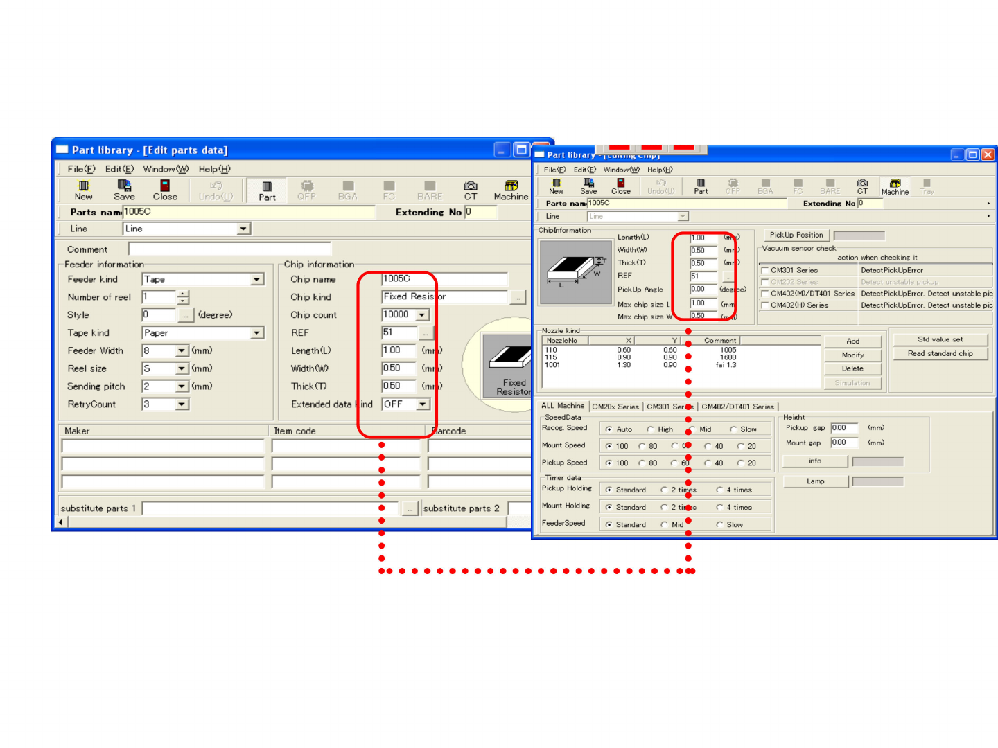 1 2 如果 1 处有改动, 2 处自动更新。 Part Lib Option 设置后的效果: BGA Extending Line |1 005C Feeder kind Number of reel Chip kind or Style Chip count Tape kind REF Length (L) Feeder Width (mm) Width(W) Reel size Fixed ThickCT) Sending pit…