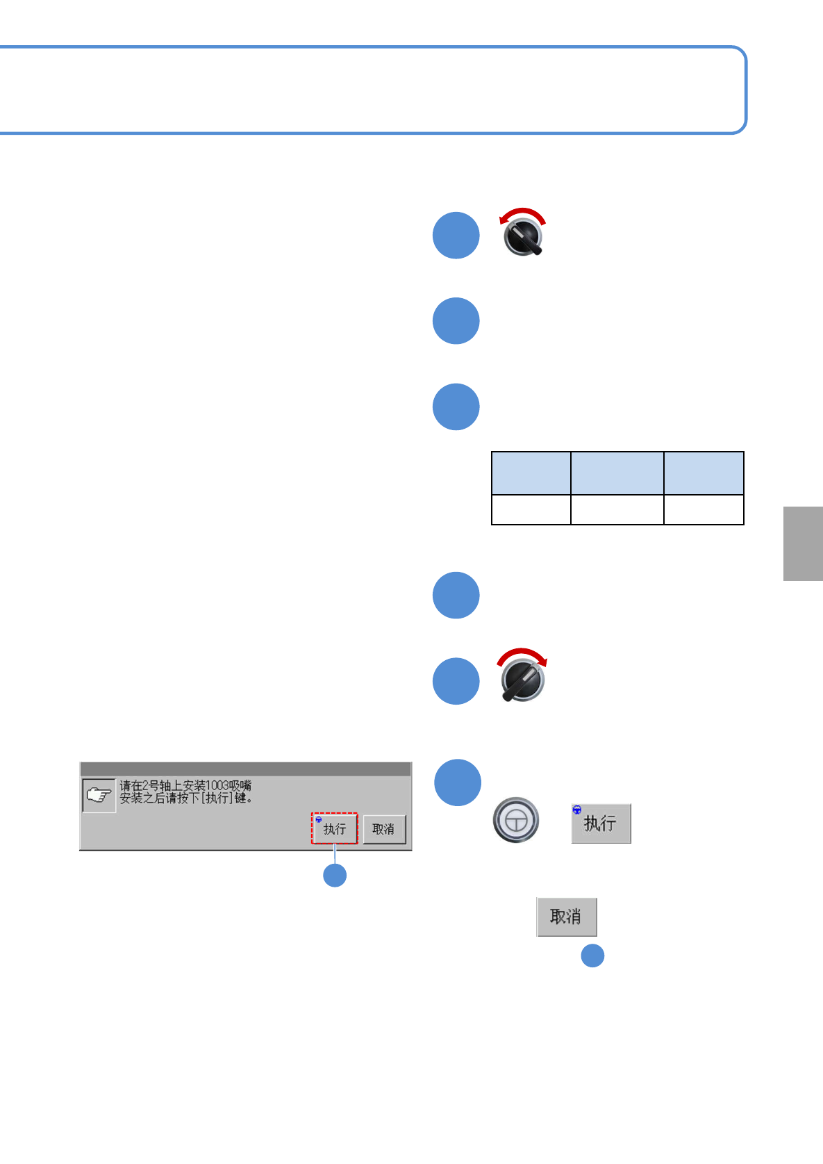 NPM-W2 EJM7DC-MB-13M-00 13-20 -2 6 5 7 9 8 贴装头 类型 吸嘴位置 吸嘴种类 3 2 号 1003 10 10 打开安全盖 安装吸嘴 ●使用吸嘴 伺服开关置于 OFF 伺服开关置于 ON 关闭安全盖 ■取消时 ( 仍然是 的画面 ) 1 确认提示 + ( 进行校准作业 )