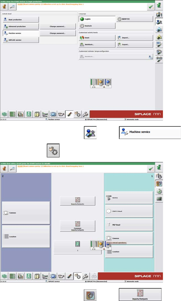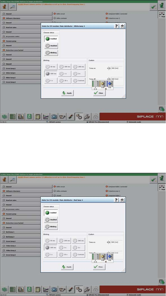 Installing the 2 Tower Light Kit or the 3 Tower Light Kit Functional Verificati on Afte r Installation 44 Assembly Instructions SIPLACE E ➢ For 2 tower light kit, th e screen above will be seen. ► Click Green lamp 2 or W…