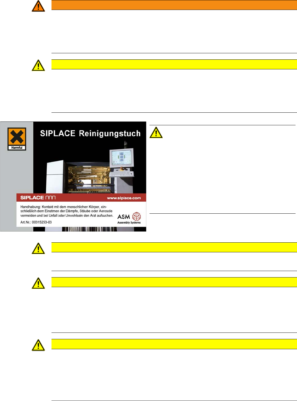 Beachten Sie die Sicherheitsdatenblätter der Verbrauchsmittel!