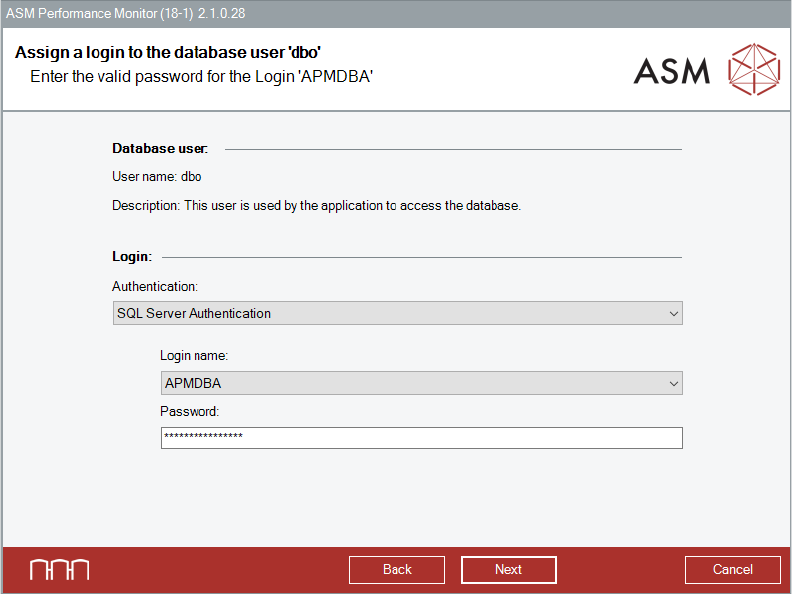 ► Enter the correct password for the existing APMDBA User account.