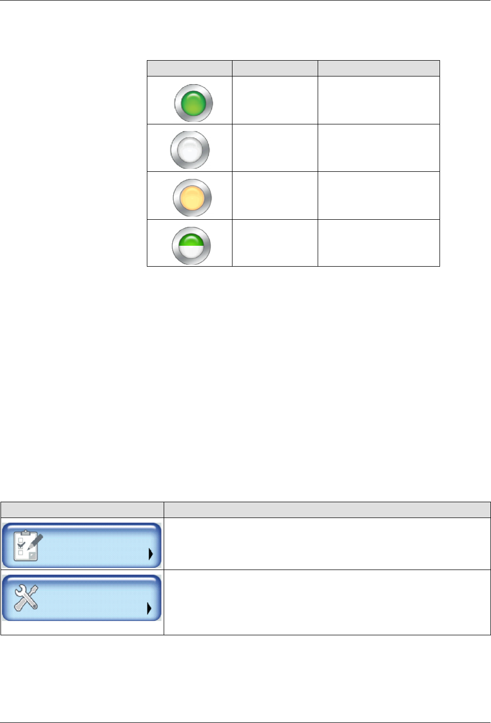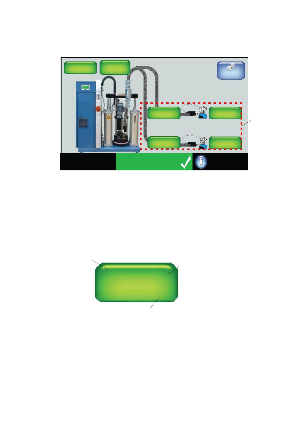 About the Touch Screen D isplay and User Interface 5 -6 Part 1121836_03 E 1 1/2014 Nordson Corporation About th e Pump Indicator Button The following ta ble describes what the Pump button color represe nts. Button Color …