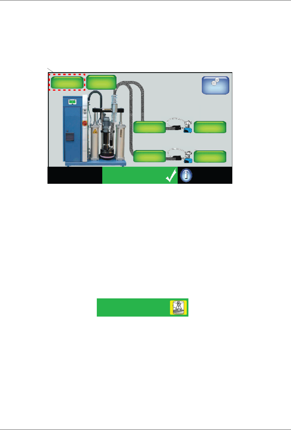 About the Touch Screen D isplay and User Interface 5 -14 Part 1121836_03 E 1 1/2014 Nordson Corporation The Pump From the Home screen, you can view the state and s tatus of the pump. Pump System Status: Ready/OK Platen 1…