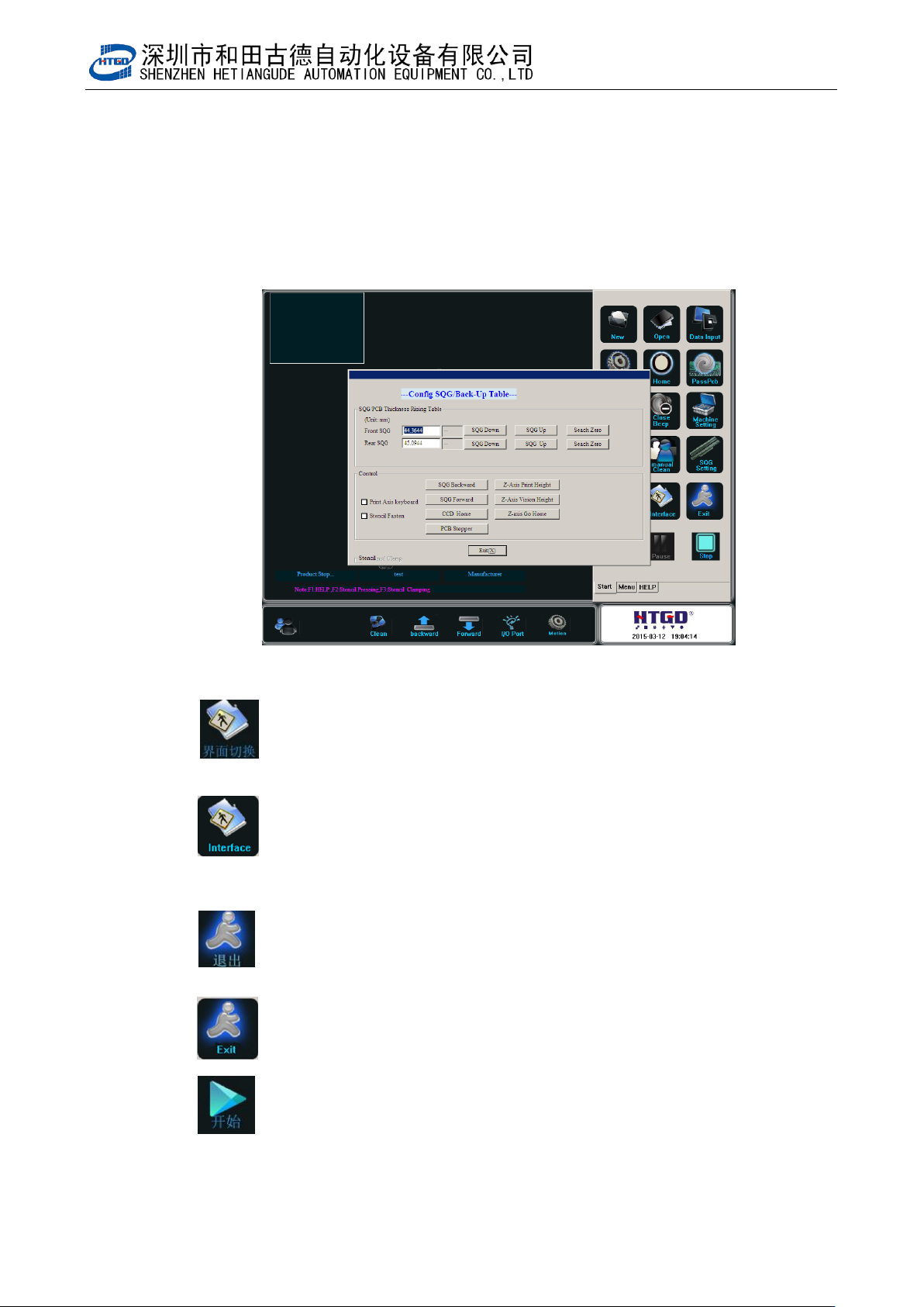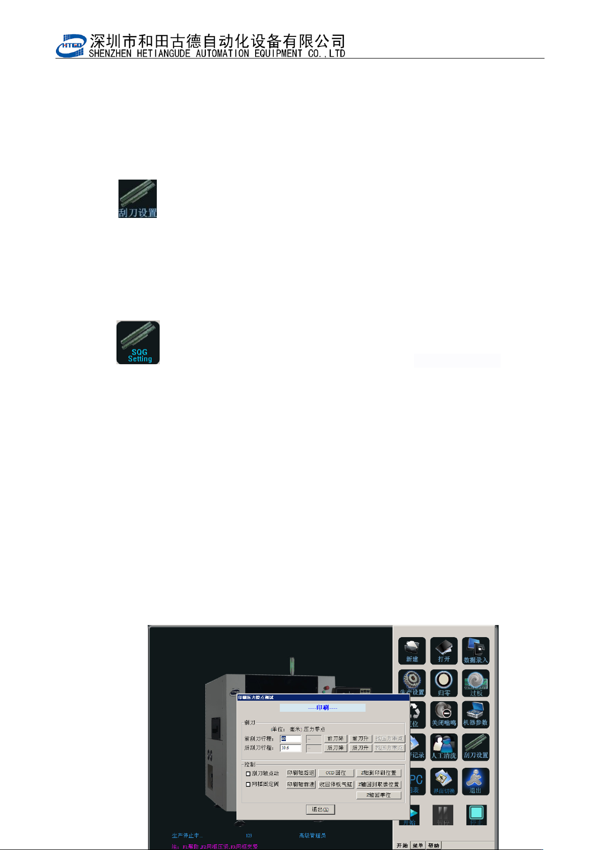 - 68 - 图 4- 13 (刮刀设 13 : :界面切换按钮。单击该按钮进行生产界面与主界面的切换; : Interface shift. Do the shift of the p roduction interface and m ain interface by clicking this button. 14 : :退出按钮。单击该按钮退出系统; : Exit. Exit the system by clicking thi…