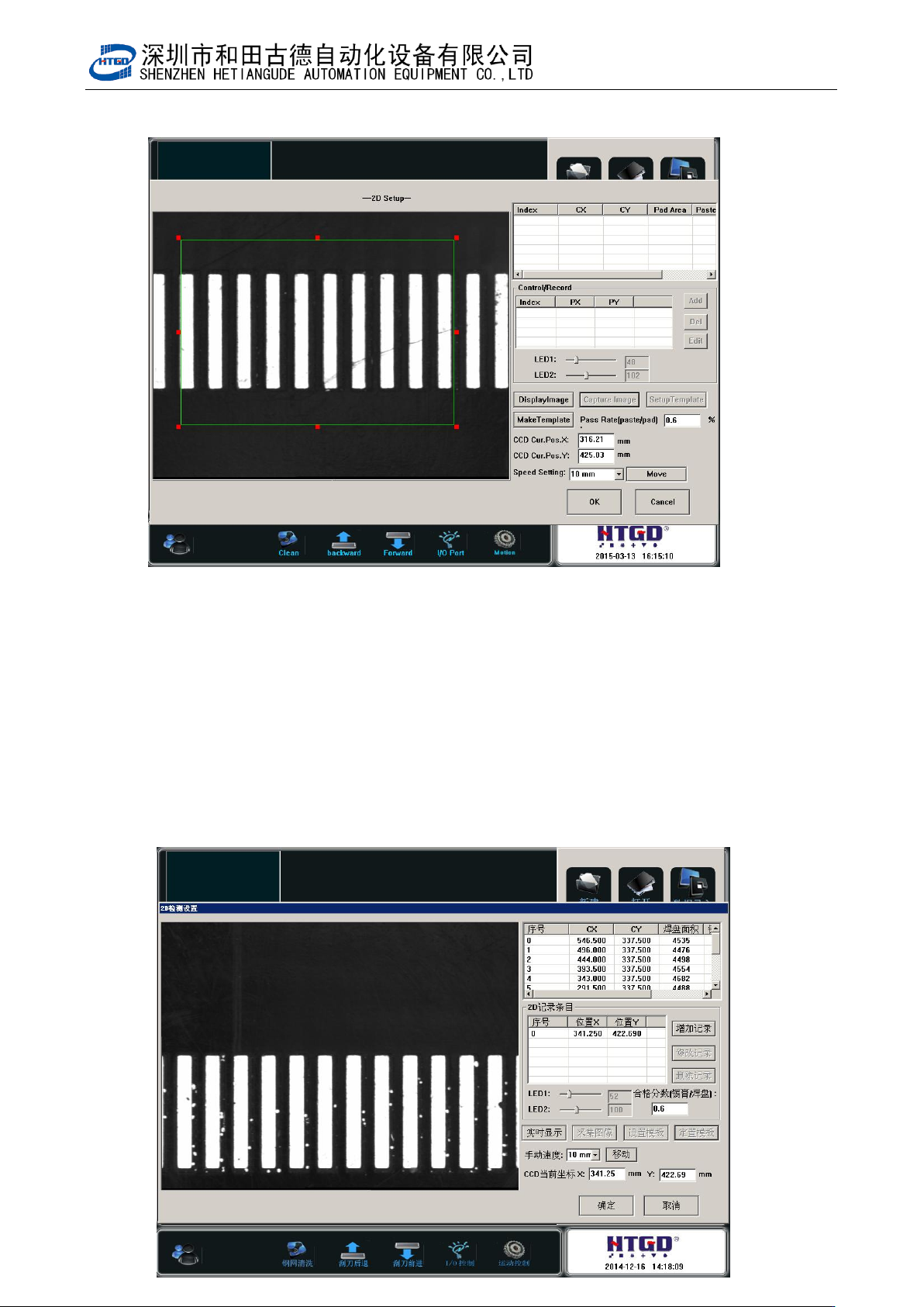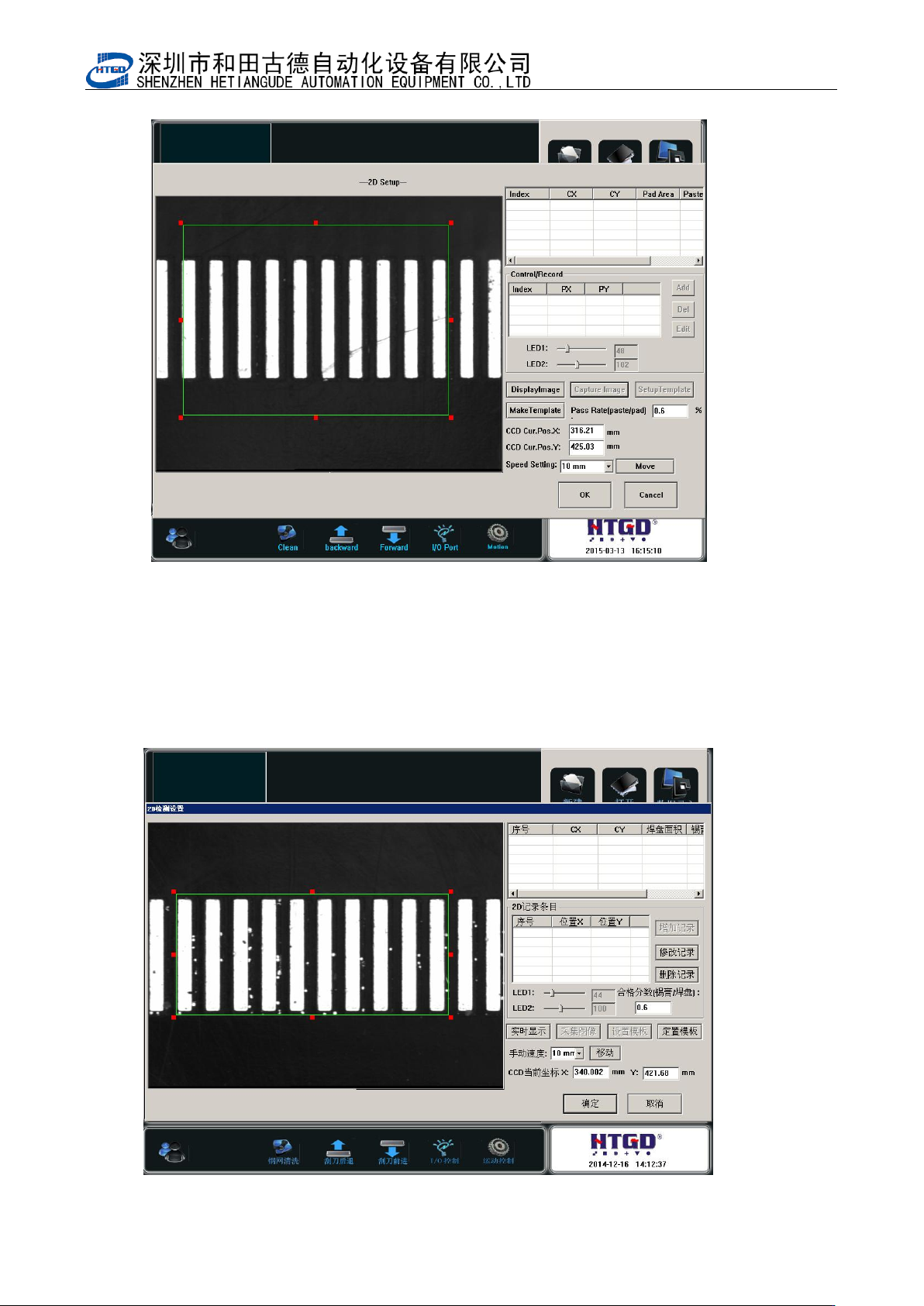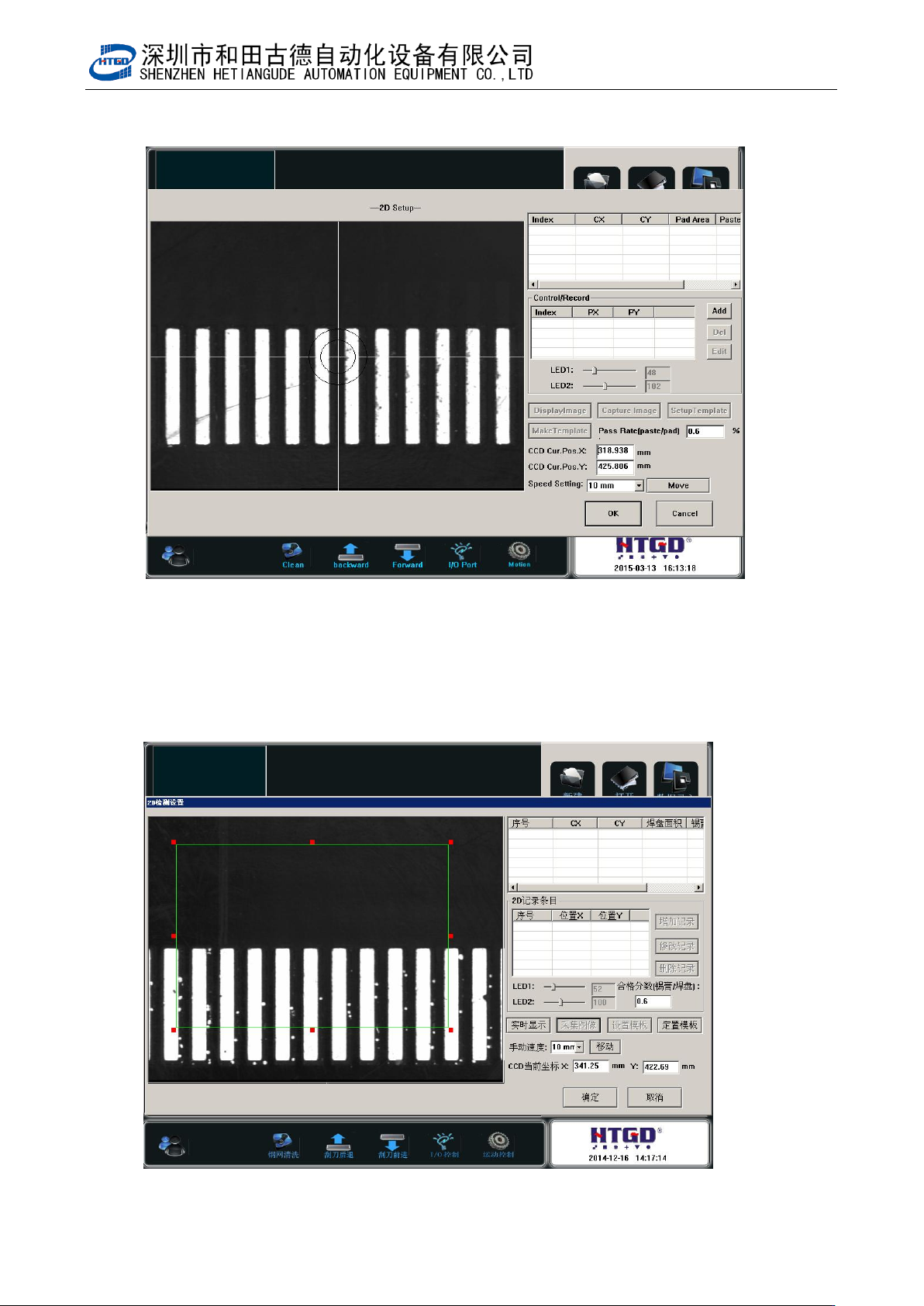 - 89 - Pix 6-5(template setting) 6. 如图 6-6 ,设置好检测点后,点击定置模板。 Click “ 定置模板 ” (template customization) button aft e r setting t h e ins p ection spot. See pix 6- 6.